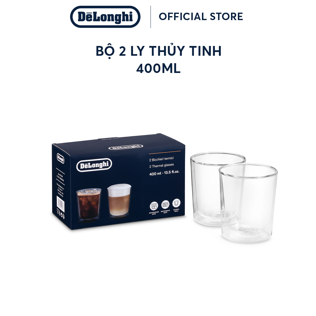Thông số kỹ thuật [Hàng chính hãng] Bộ 2 ly thủy tinh DeLonghi (400ml)