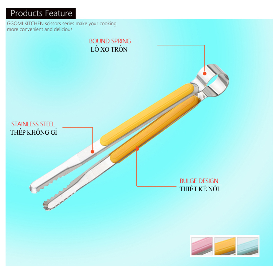 Thông số kỹ thuật [HÀNG CHÍNH HÃNG]Kẹp gắp thức ăn đa năng màu sắc pastel bằng thép không gỉ an toàn cho sức khỏe mọi cỡ GGOMi Hàn Quốc