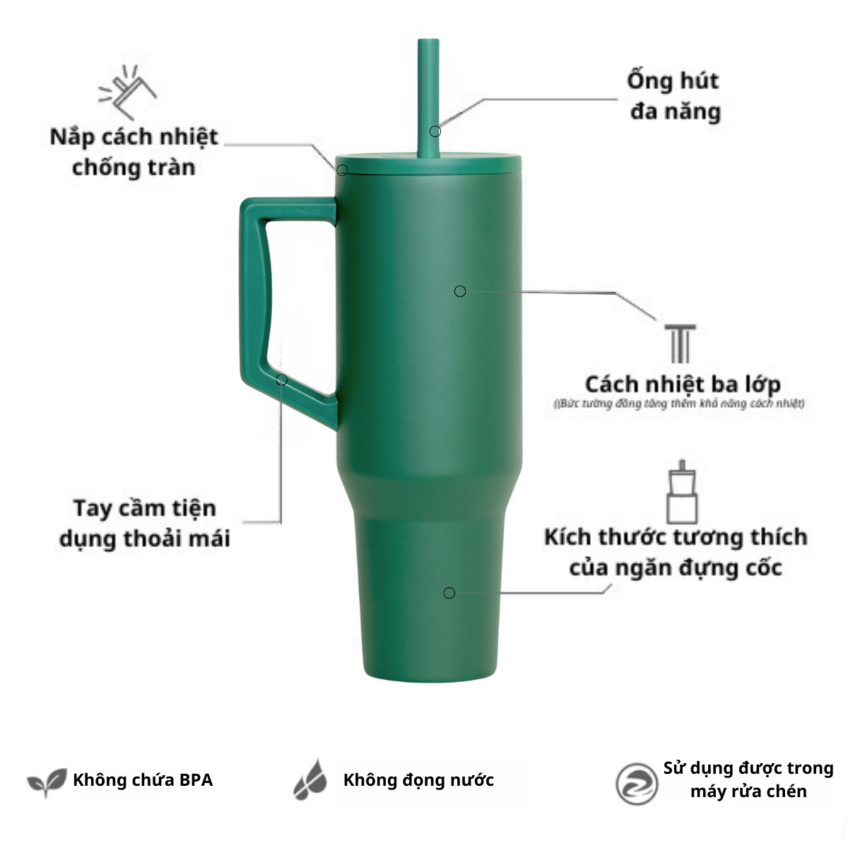 - Tay cầm thoải mái,dễ dàng mang đồ uống của bạn đi bất cứ đâu.