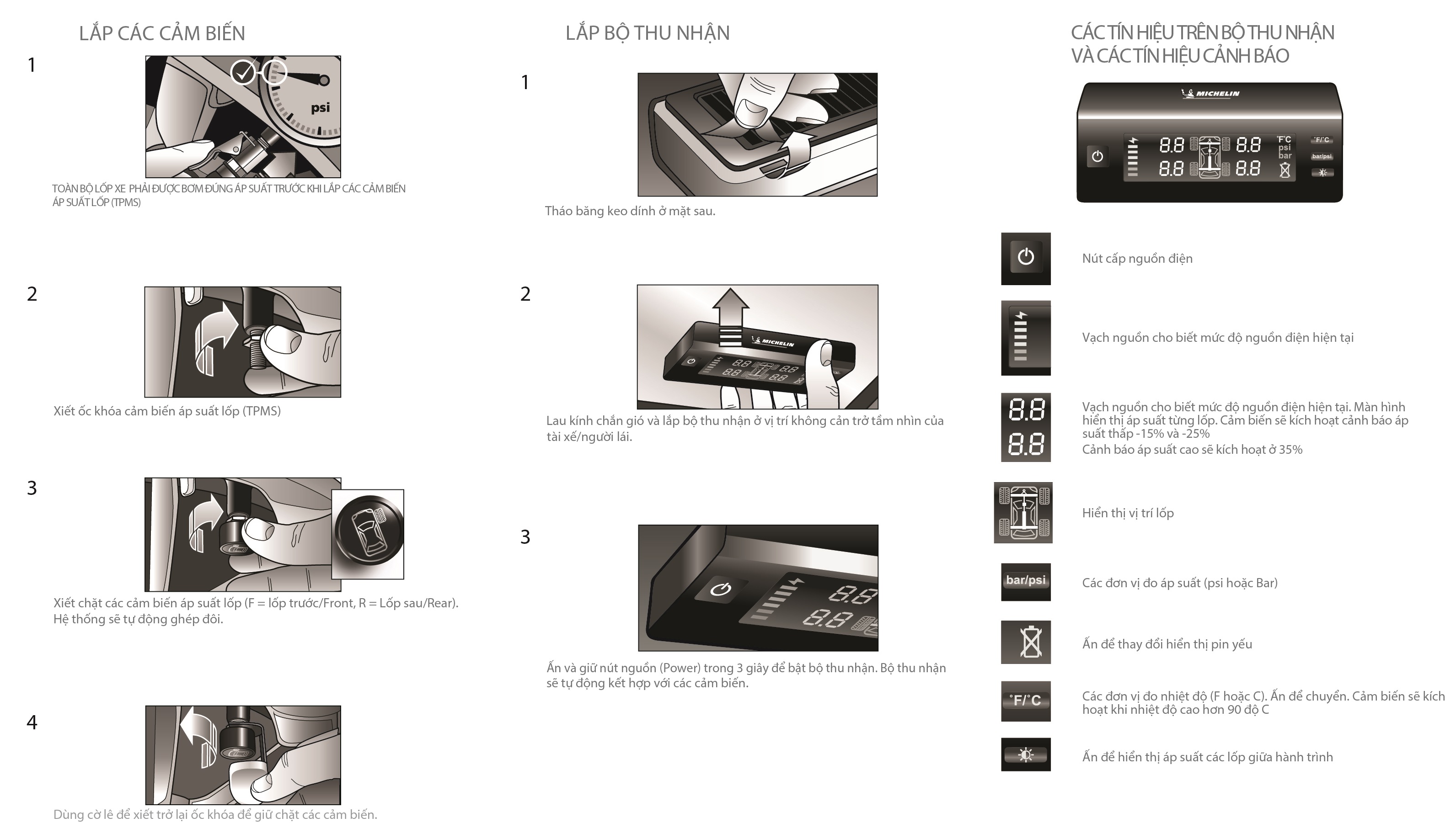 - Hiển thị đo áp suất lốp theo đơn vị Bar hoặc Psi