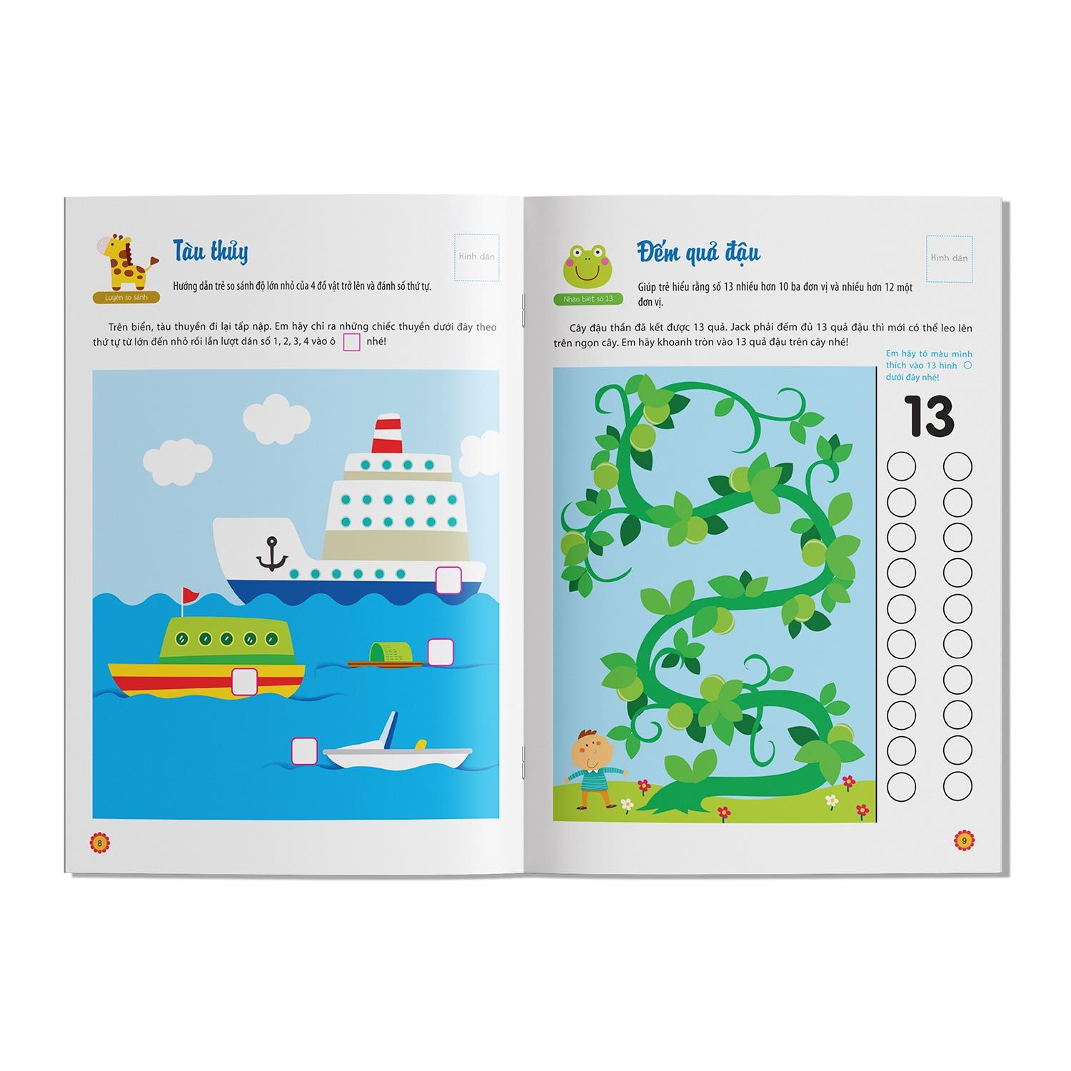 Điểm thú vị của bộ sách là những câu hỏi, bài tập được trình bày rất sống động, đầy màu sắc, sẽ kích thích được sự yêu thích, ham học hỏi của trẻ. Với những hình dán Tuyệt vời, Rất tốt, Rất thông minh, Đủ tiêu chuẩn, Cần cố gắng… để đánh giá từng bài tập, bố mẹ hãy khuyến khích, cổ vũ con mình học toán.