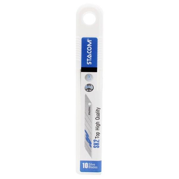 Hộp 10 Lưỡi Dao Rọc Giấy Stacom 30 Độ 9mm SK2 E-3009