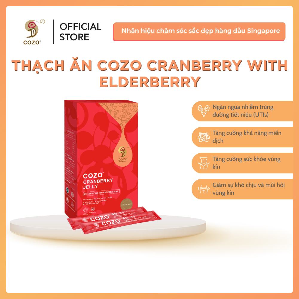 Thạch ăn COZO Cranberry Elderberry Jelly là một loại thạch ít đường có nguồn gốc hoàn toàn từ thảo mộc giúp tăng vẻ trẻ đẹp cũng như sức khỏe cho cơ thể và vùng kín của bạn. Sản phẩm chứa chất chống oxy hóa mạnh cùng vitamin tổng hợp giúp tăng cường hệ miễn dịch hiệu quả.
