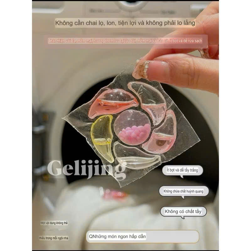 Màu sắc: Viên giặt có màu trắng, dễ dàng nhận diện và sử dụng.