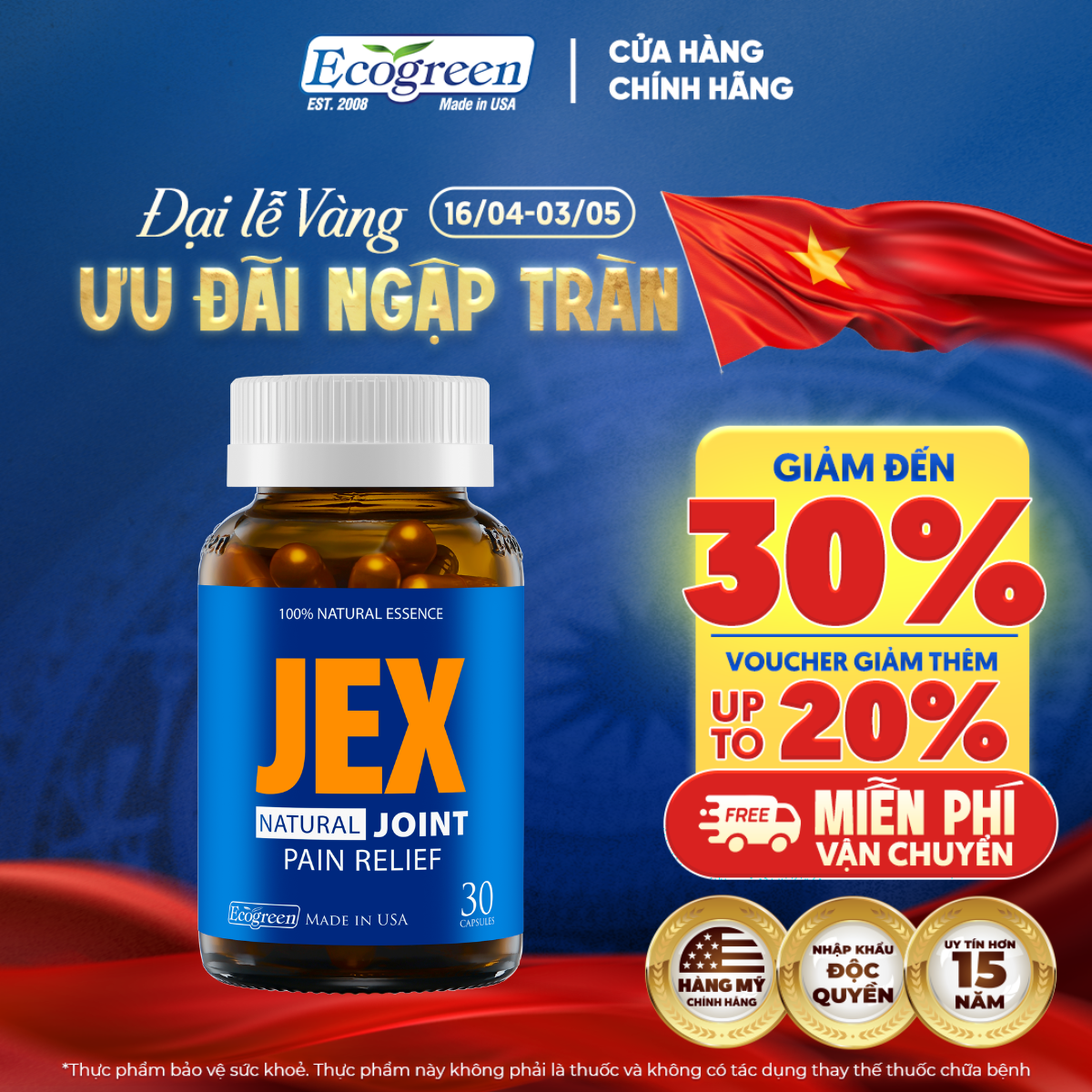 [Hộp 30v] Viên Uống Giảm Đau Xương Khớp JEX Ecogreen Tái Tạo Sụn Khớp