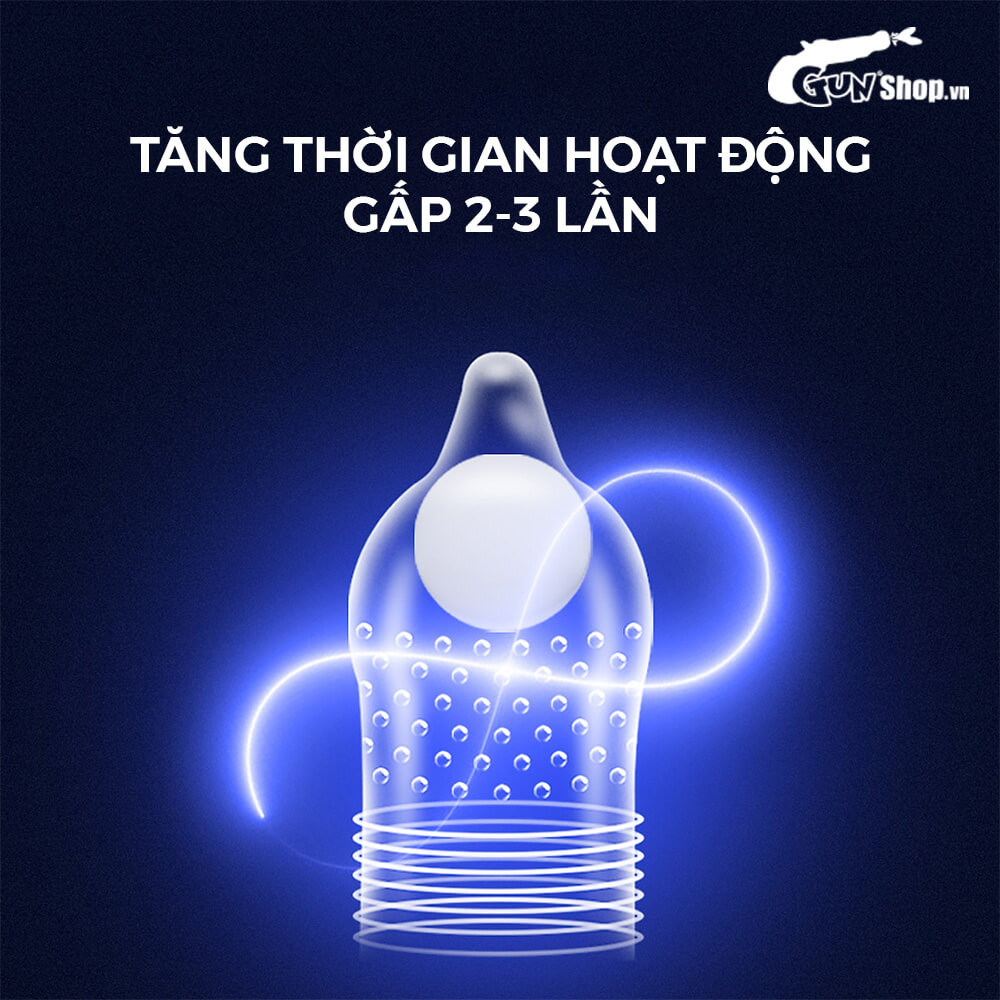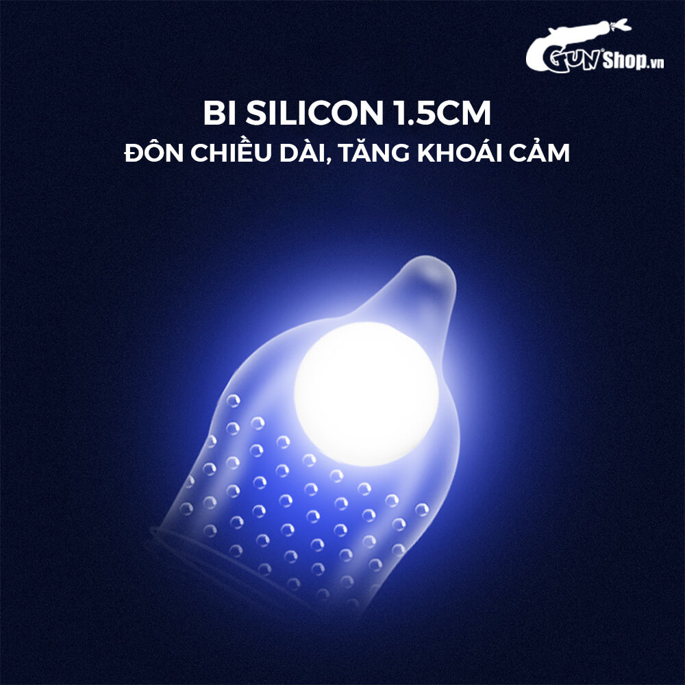 ✪ Đặc điểm: Viên bi to 1.5cm tăng kích thước; Kéo dài thời gian gấp 2-3 lần; Gai nổi trang bị dày đặc; Gân sóng bao quanh phần đầu bao; Thiết kế ôm sát, chống tuột.