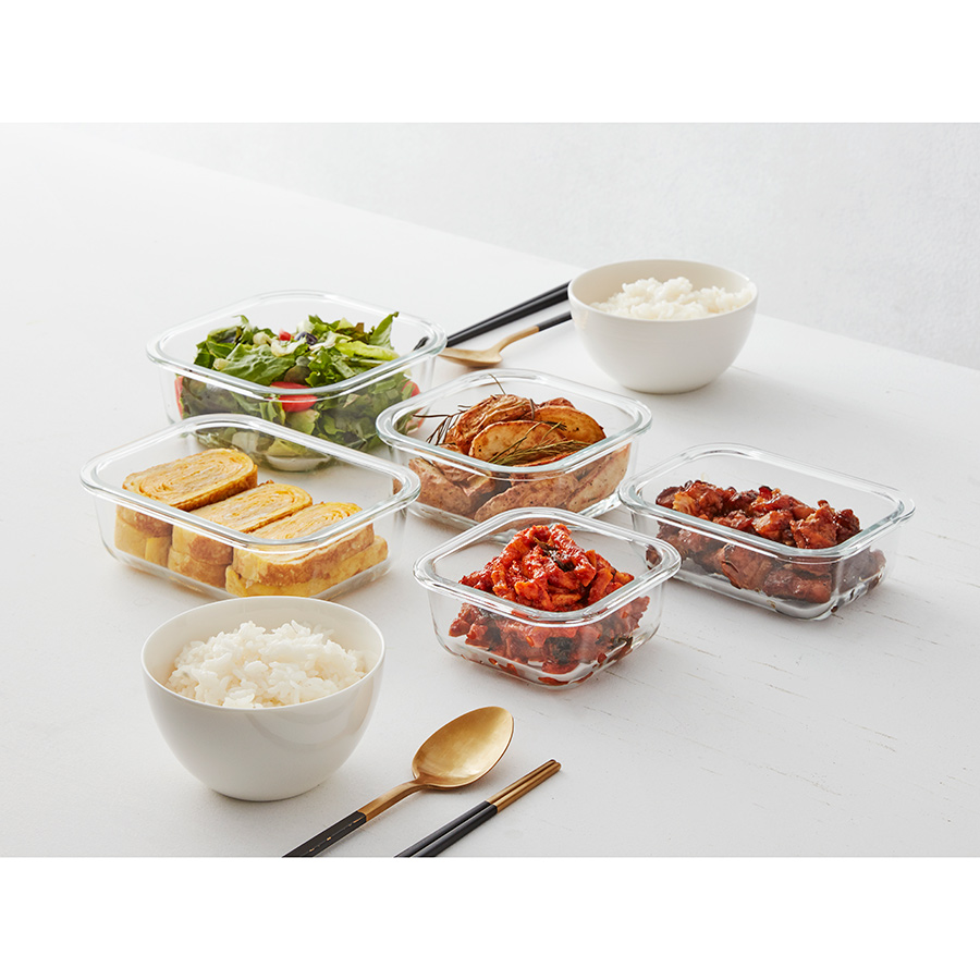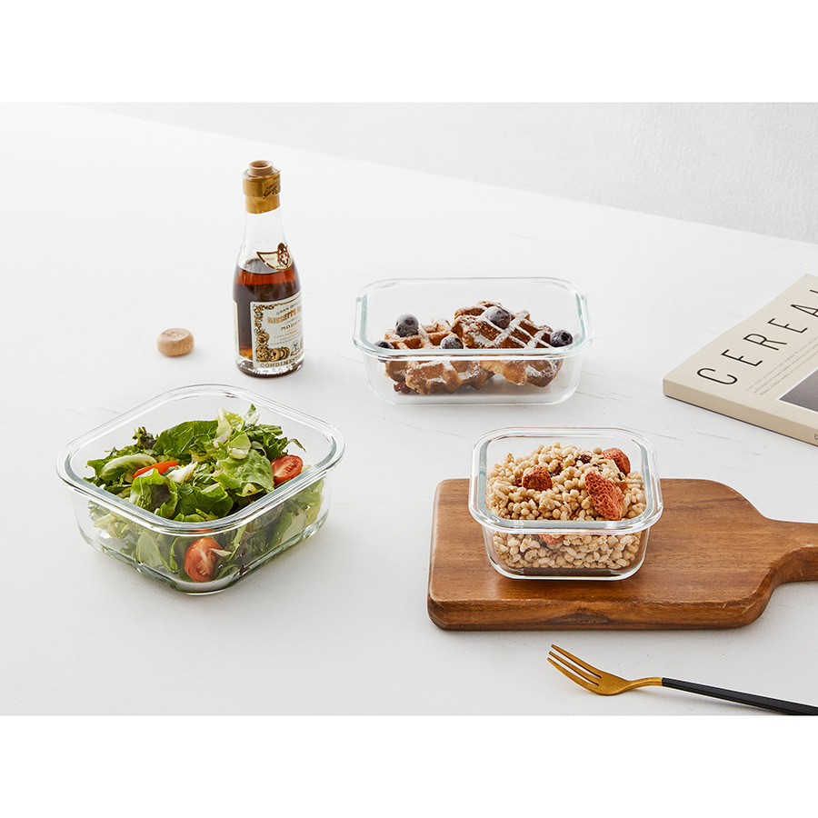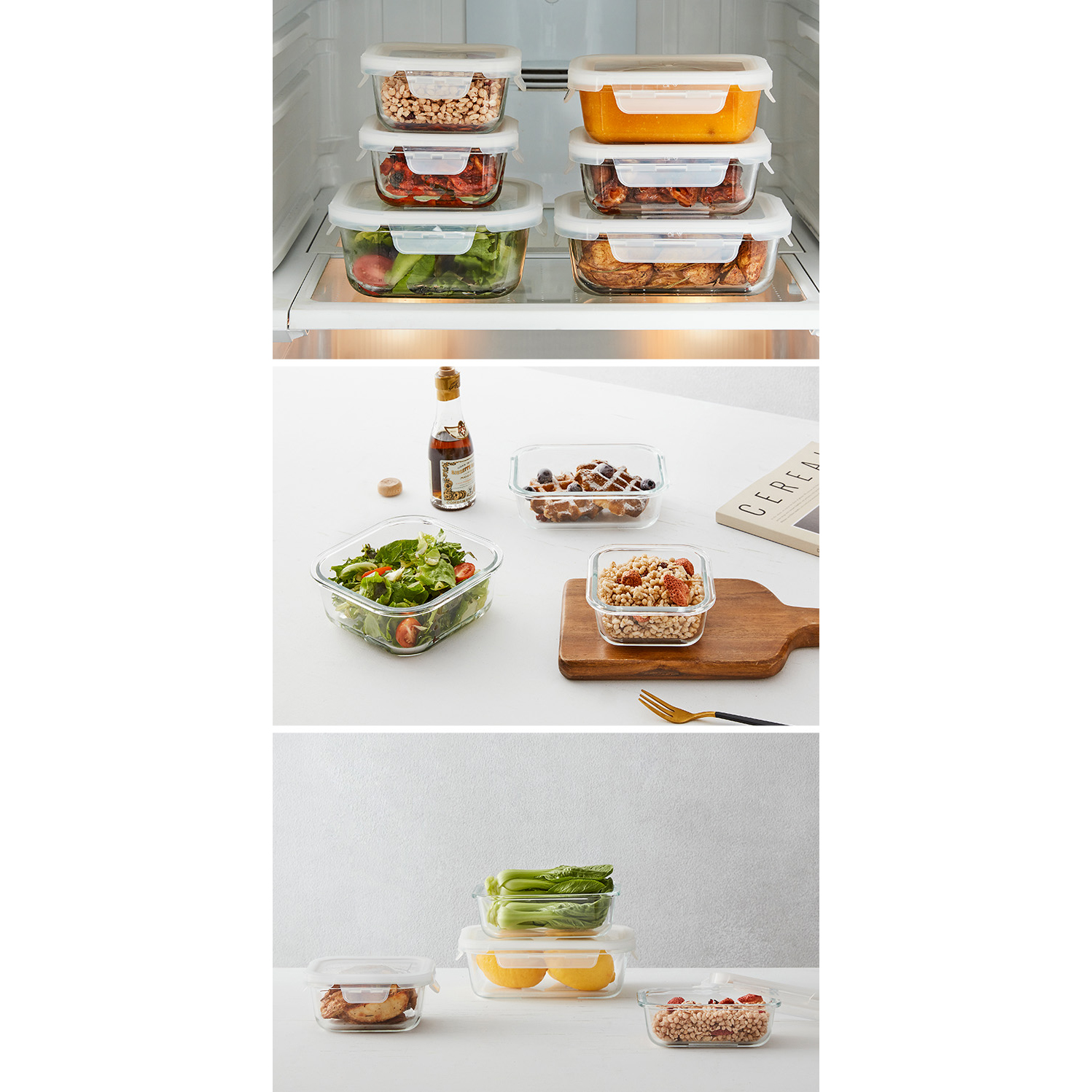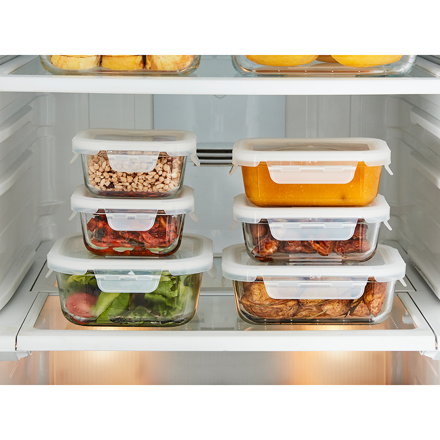 - Hộp bằng thủy tinh trong suốt giúp quan sát thực phẩm bên trong dễ dàng.