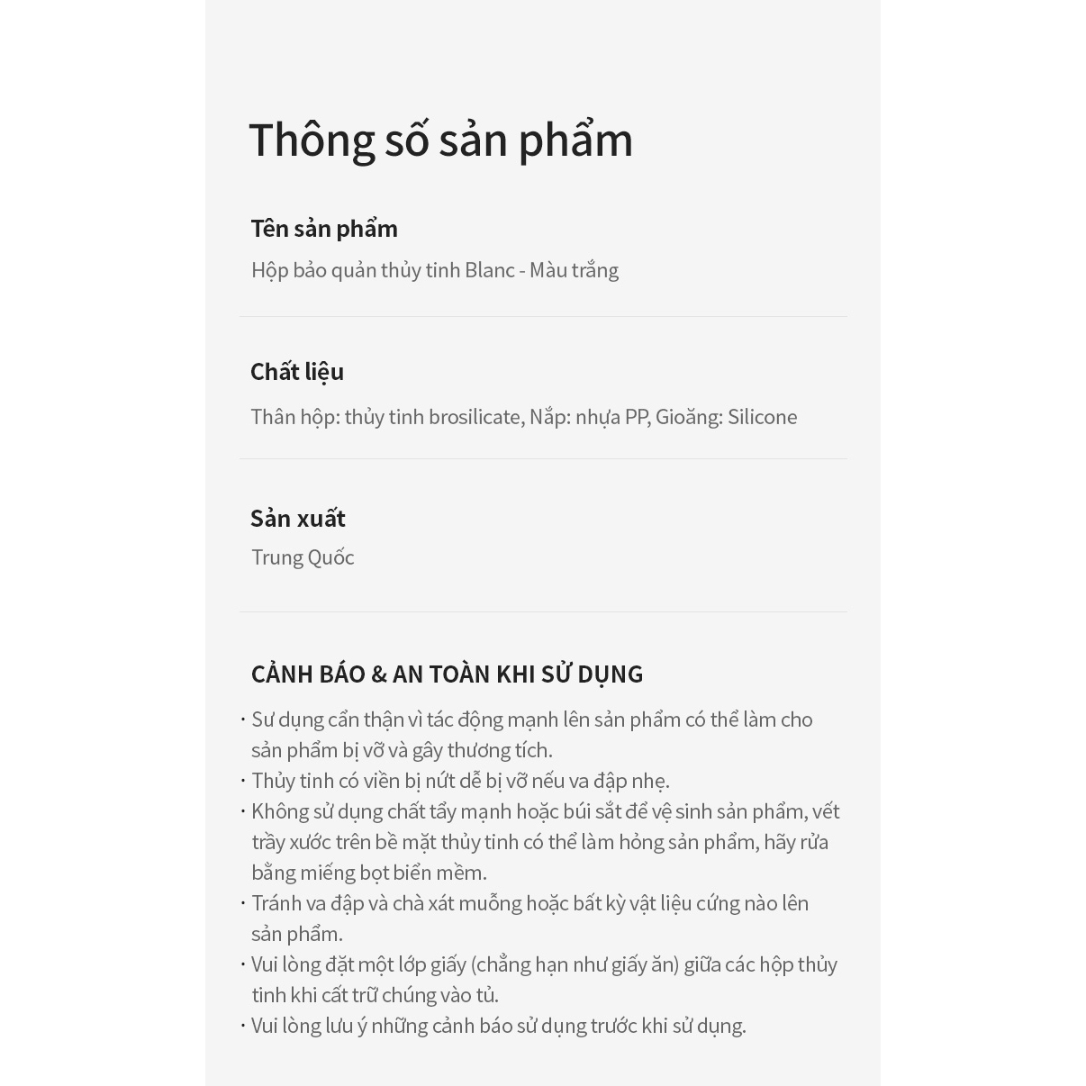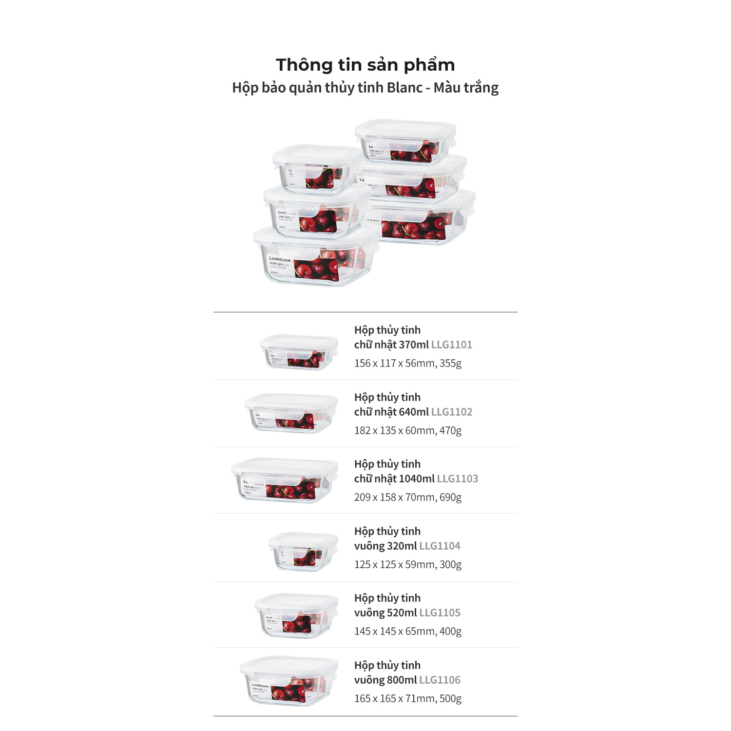Thông số kỹ thuật Hộp bảo quản thủy tinh LocknLock BLANC - Hộp vuông