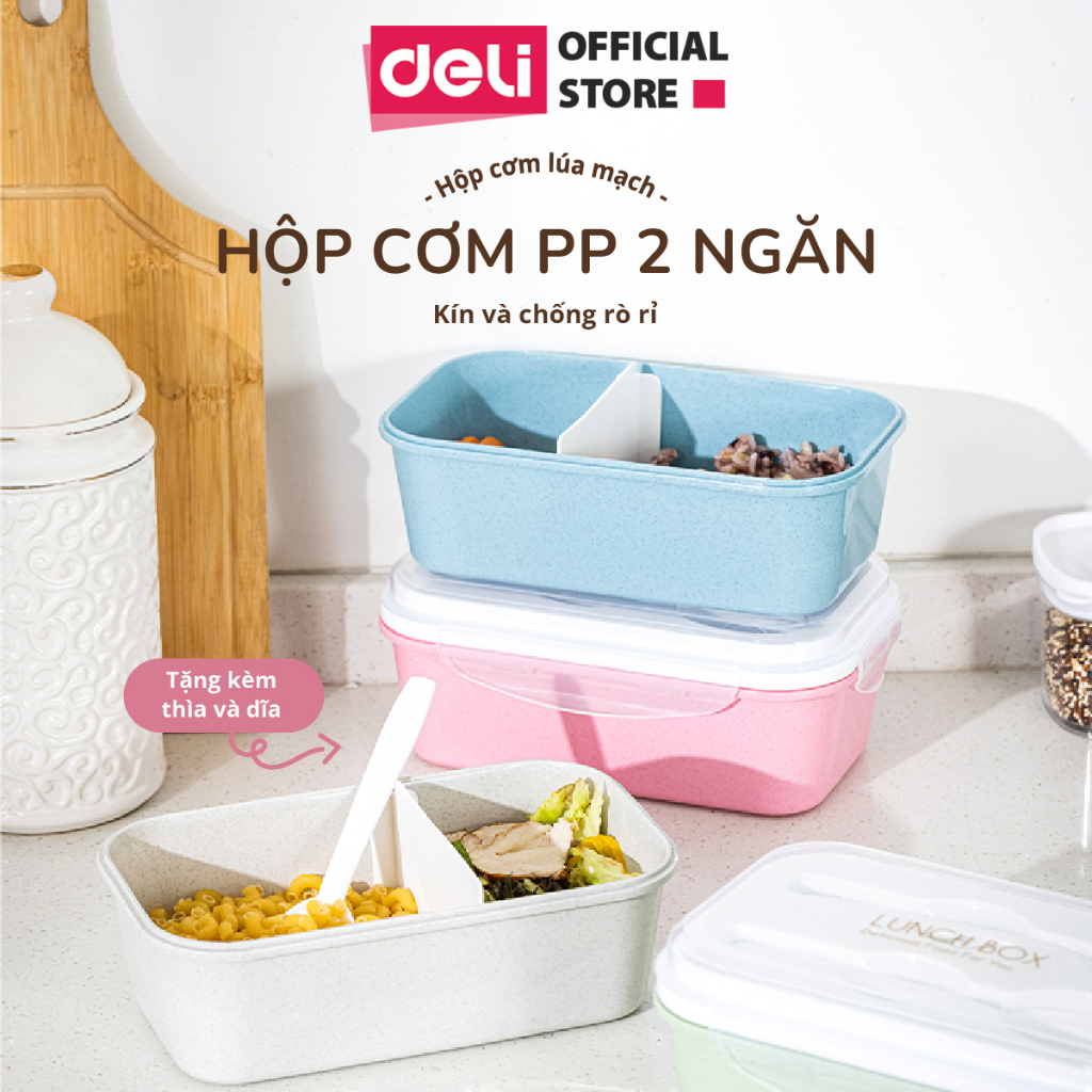 Hộp Cơm Trưa Văn Phòng Lúa Mạch Deli - 2 Ngăn Linh Hoạt Có Thể Sử Dụng Trong Lò Vi Sóng Chống Tràn An Toàn, Hộp Đựng Cơm Tặng Kèm Thìa Dĩa