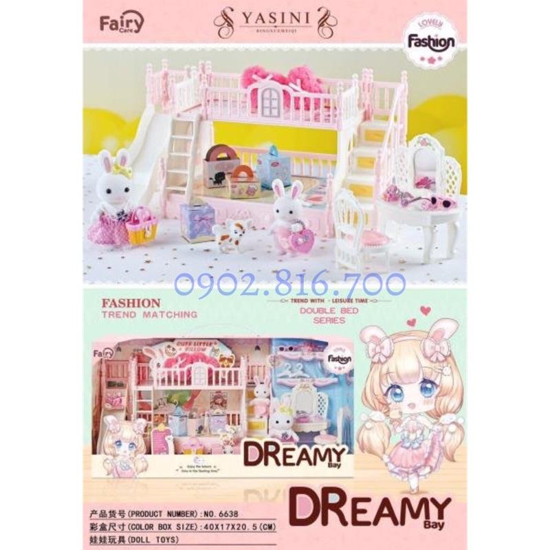 Hộp đồ chơi cho bé gái ngôi nhà búp bê - ngôi nhà của thỏ - phòng ngủ - bàn trang điểm
