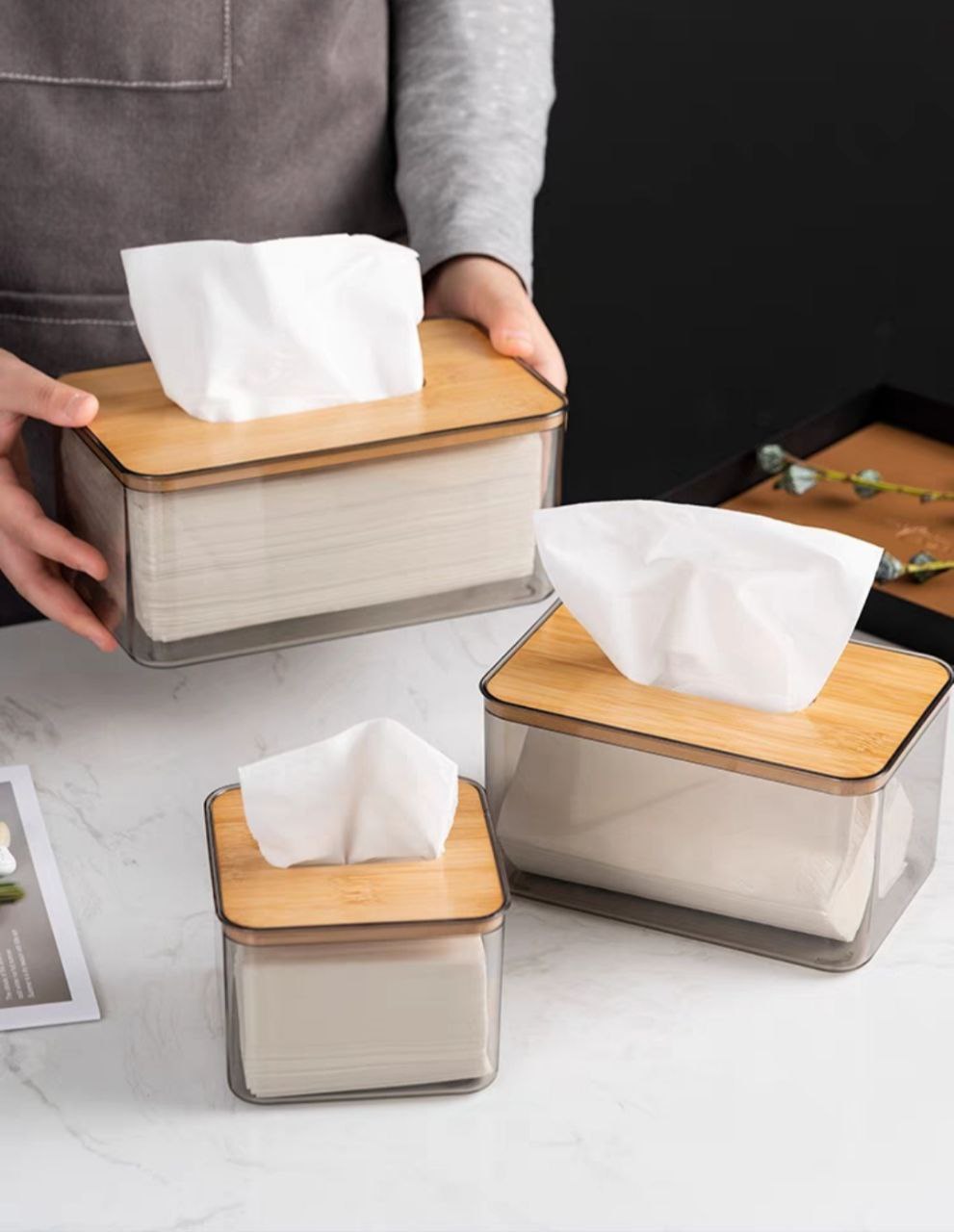 Thông số kỹ thuật HỘP ĐỰNG GIẤY ĂN NHỰA MIKA TRONG SUỐT NẮP GỖ TRE PHONG CÁCH BẮC ÂU
