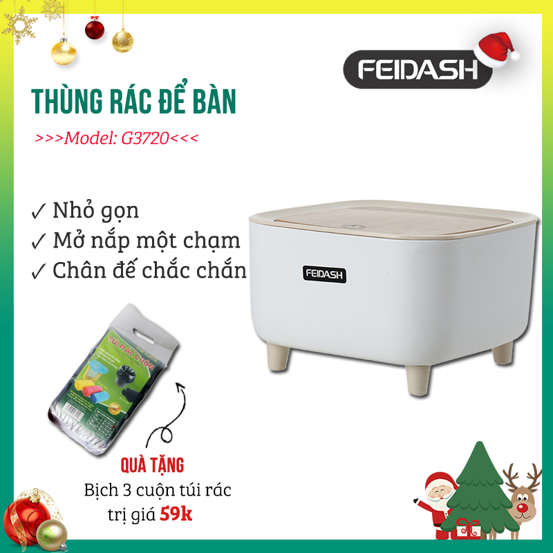 Thông số kỹ thuật Hộp Đựng Rác Để Bàn Làm Việc Nắp Vân Gỗ Feidash G3720 - Thiết kế với kiểu dáng sang trọng, bo góc mềm mại