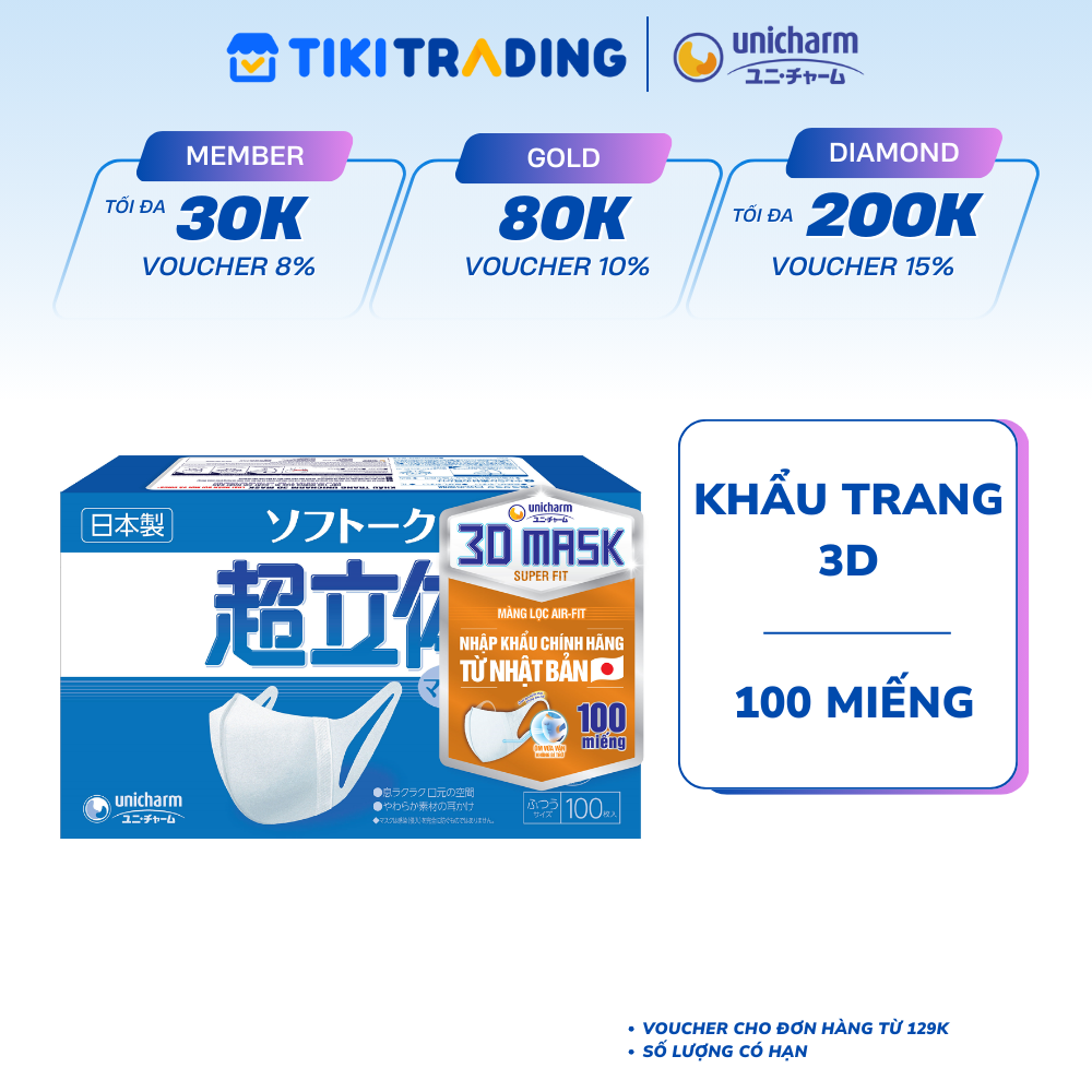 Thông số kỹ thuật Hộp Khẩu Trang 3D Mask Unicharm Nhật Bản Ngăn Ngừa Khói Bụi Chống Ô Nhiễm (100 miếng)