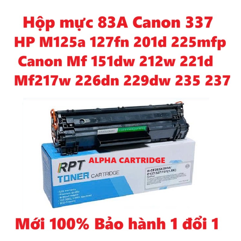Hộp mực 83A/337 Dành cho HP M125 125fw 125A M126 127 M127fw M201 Canon MF151dw 211 212w 221d 215 MF217w MF226dn MF229dw CÓ LỔ ĐỔ MỰC-Hàng chính hãng Alpha Cartridge
