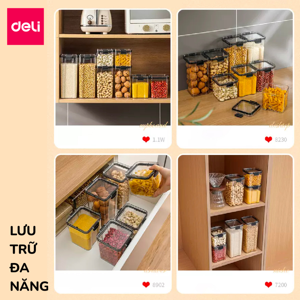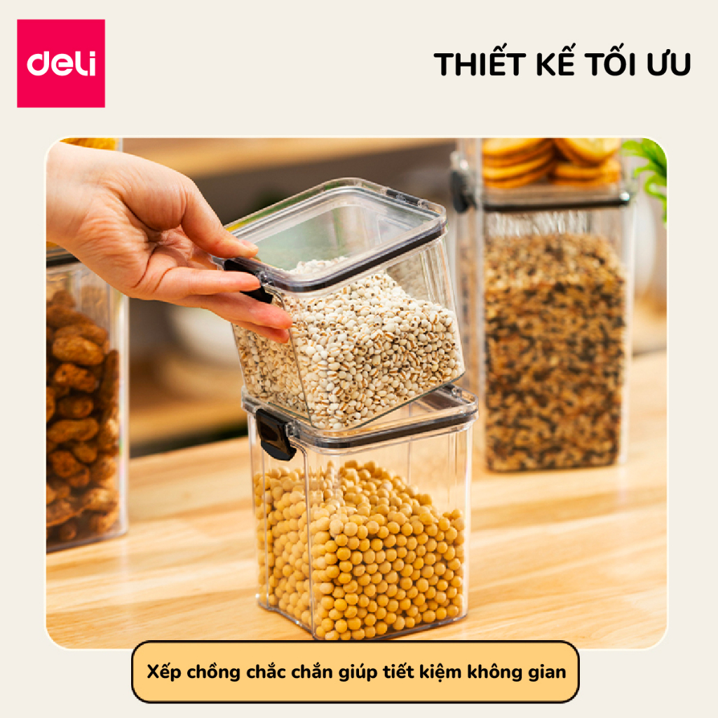 Thông số kỹ thuật Hộp Nhựa Đựng Thực Phẩm Khô DELI- Hộp Nhựa Đựng Ngũ Cốc Đồ Khô Nắp Kín Chống Ẩm Mốc Nắp Kín Sắp Xếp Nhà Bếp Bảo Quản Thực Phẩm Phân Chia Thực Phẩm Chống Mùi Tủ Lạnh Chống Tràn Chống Rò Rỉ