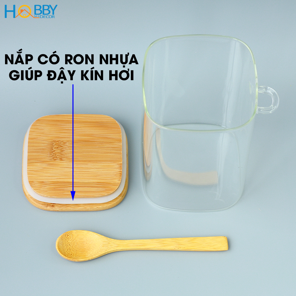 Hủ thủy tinh đựng hạt nắp gỗ tre có muỗng HOBBY Home Decor LTT1 có 3 size tùy chọn loại nắp kín