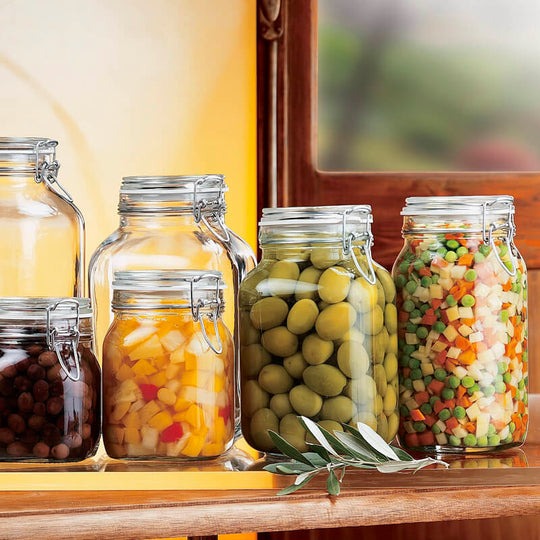 Hũ thủy tinh nắp cài Bormioli Rocco Fido 2L là lựa chọn lý tưởng cho nhu cầu bảo quản dung tích vừa – lớn trong gia đình, quán cà phê, tiệm bánh, nhà hàng – khách sạn. Thiết kế nắp cài kim loại chắc chắn, kết hợp gioăng cao su giúp tạo độ kín hơi tuyệt đối, giữ thực phẩm tươi lâu và hạn chế ẩm mốc.