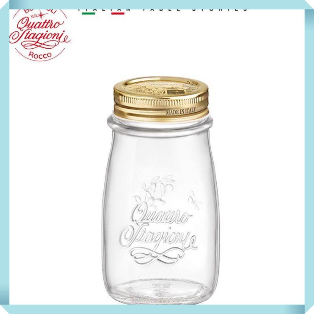 Nắp đậy màu vàng đồng nổi bật có in logo thiết kế dạng xoay giúp đậy kín và cách ly thực phẩm khỏi bụi bẩn. Phần thân hũ cách điệu với logo Quattro Stagioni in nổi vừa đẹp mắt vừa có công dụng chống trơn trượt và làm nổi bật sự tinh tế của chất liệu thủy tinh.