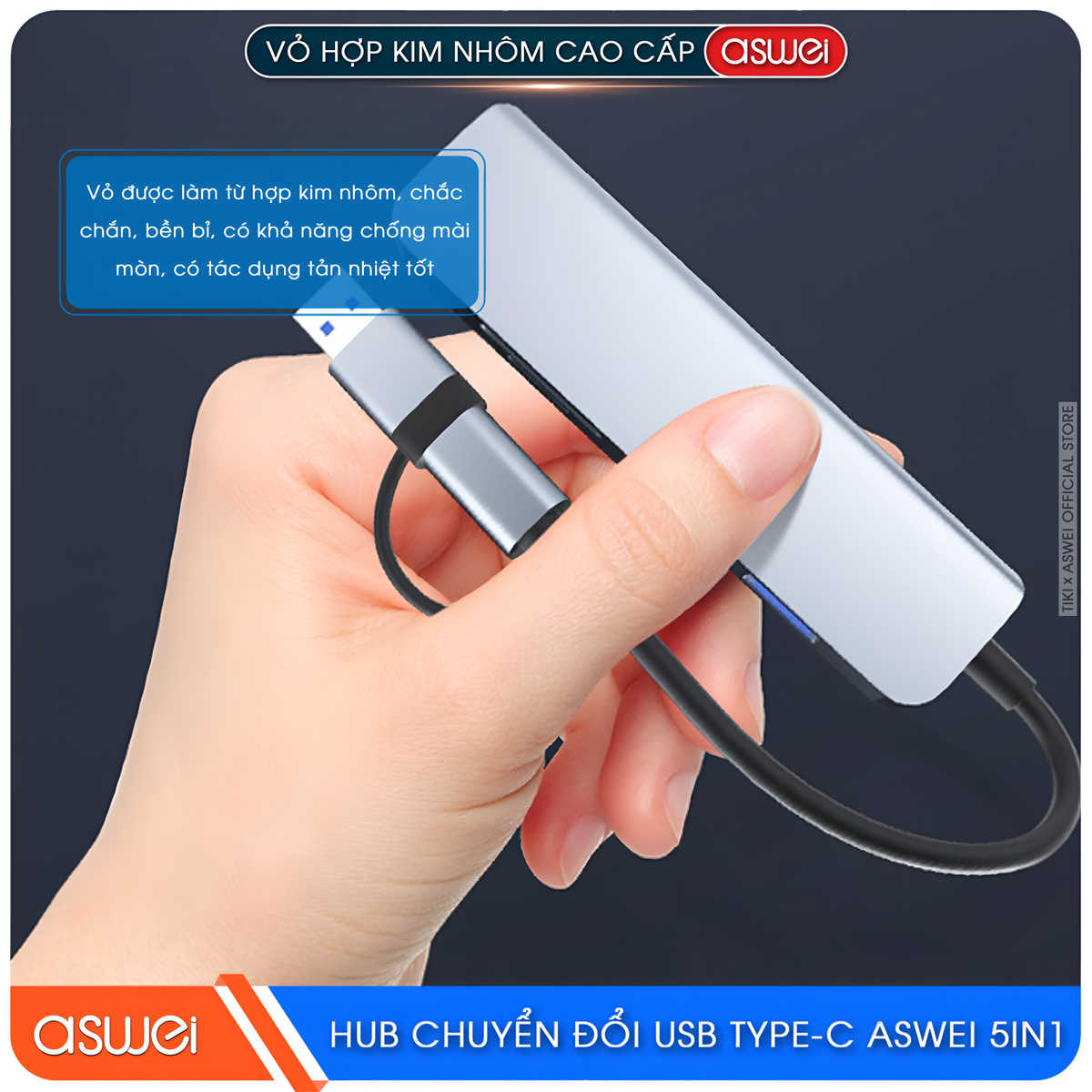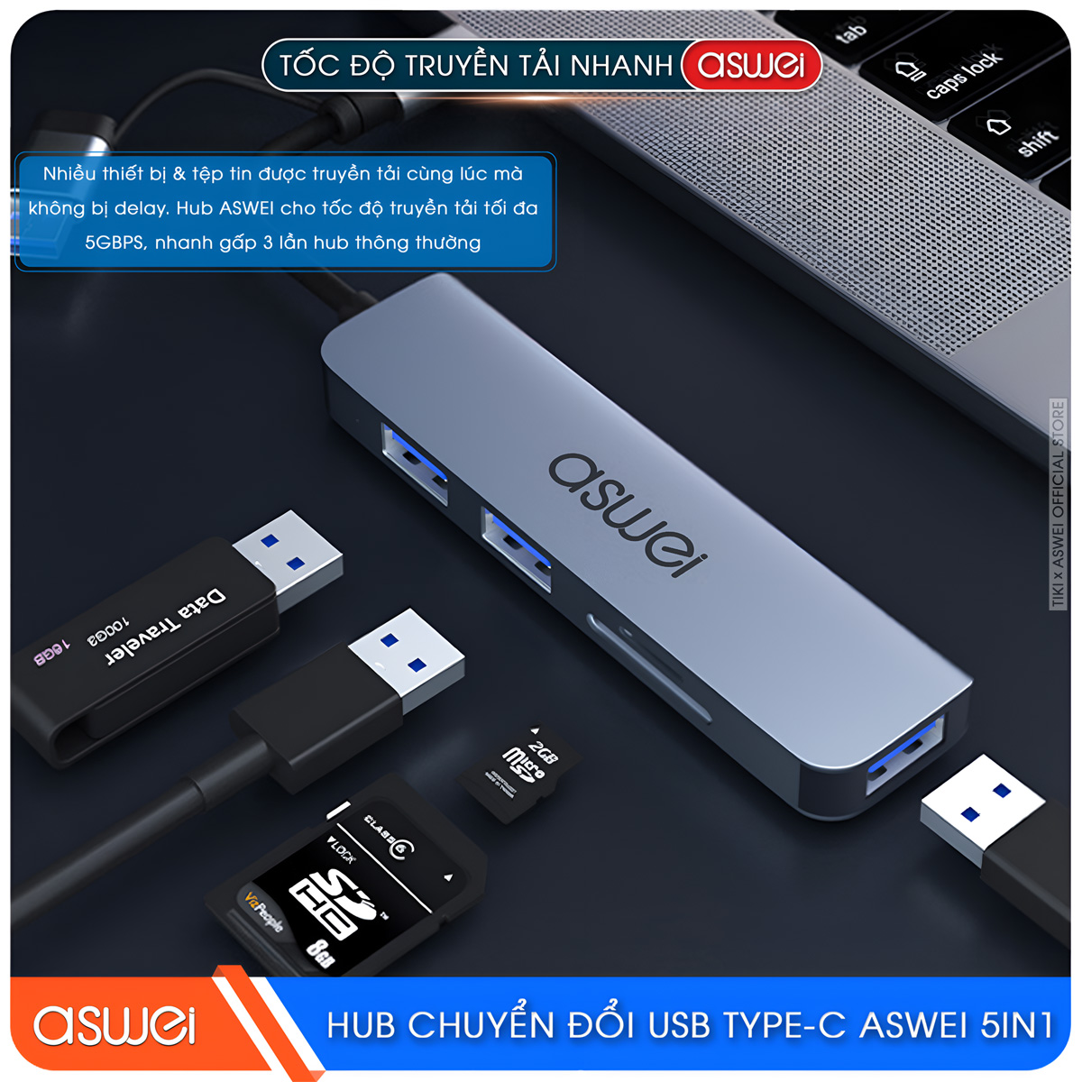 - Hub USB và Type-C ASWEI 5in1: Tốc độ truyền tải cao, không bị chậm trễ