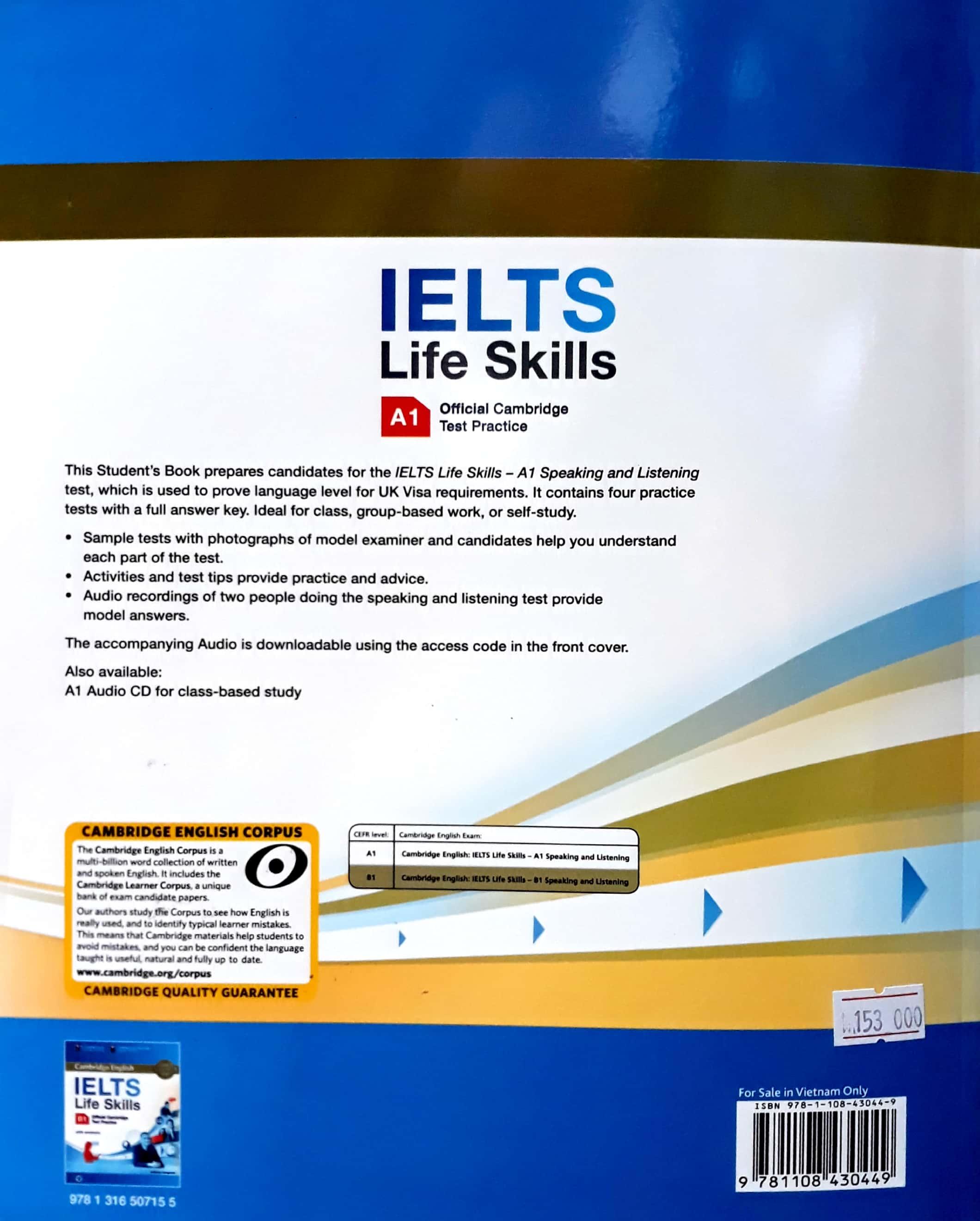 Official preparation for the 'IELTS Life Skills' Speaking and Listening exam. This Student's Book prepares candidates for the IELTS Life Skills - A1 Speaking and Listening exam which is used to prove language level for UK Visa requirements. It includes four practice tests for the exam with a full answer key. There is an introduction to the exam with information about what to expect and guidelines for teachers on how to assess students. There are model Speaking answers, practice exercises and exam tips to support candidates. The accompanying Audio is downloadable using an access code in the book. Audio CDs are also available separately for class use.Giá sản phẩm trên Tiki đã bao gồm thuế theo luật hiện hành. Bên cạnh đó, tuỳ vào loại sản phẩm, hình thức và địa chỉ giao hàng mà có thể phát sinh thêm chi phí khác như phí vận chuyển, phụ phí hàng cồng kềnh, thuế nhập khẩu (đối với đơn hàng giao từ nước ngoài có giá trị trên 1 triệu đồng).....
