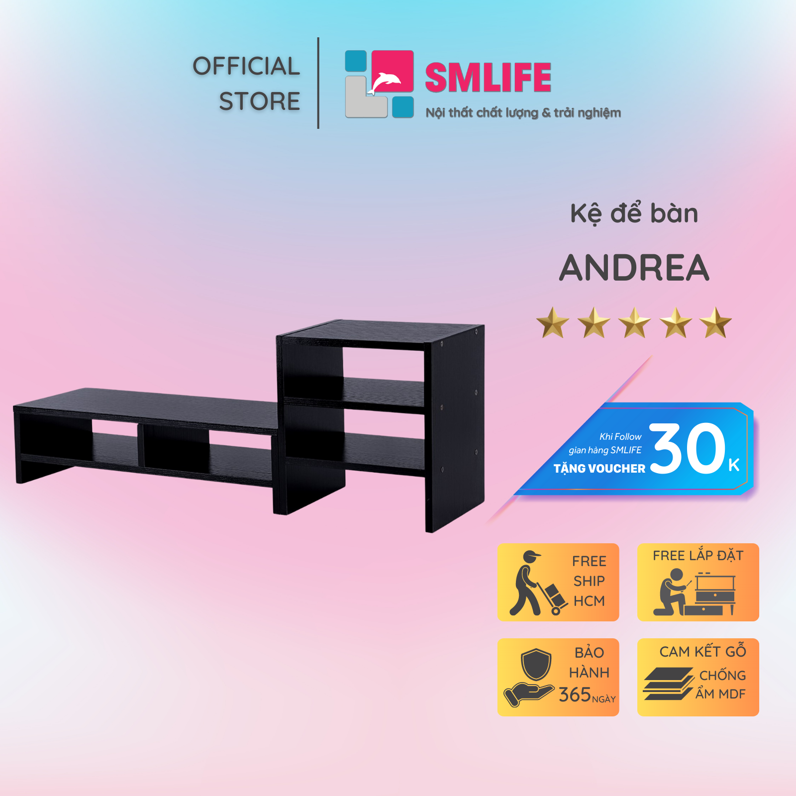 Mang đậm phong cách nội thất đơn giản. Kệ để bàn gỗ hiện đại SMLIFE Andrea là một sự bổ sung hoàn hảo cho phòng làm việc, phòng đọc sách của bạn. Kệ để bàn gỗ hiện đại Andrea được thiết kế với nhiều tầng kệ mang đến nhiều không gian giúp bạn tổ chức tài liệu và các vật dụng văn phòng thoải mái. Ngoài ra tủ hồ sơ văn phòng còn có thể sử dụng để trưng bày, trang trí cho không gian phòng khách. Sử dụng vật liệu ván ép công nghiệp MDF chống ẩm phủ Melamine cao cấp giúp tủ văn phòng gỗ SMLIFE có độ bền cao, chống trầy và chống ẩm rất tốt. Bạn có thể tự lắp đặt sản phẩm dễ dàng với các phụ kiện và hướng dẫn đi kèm.