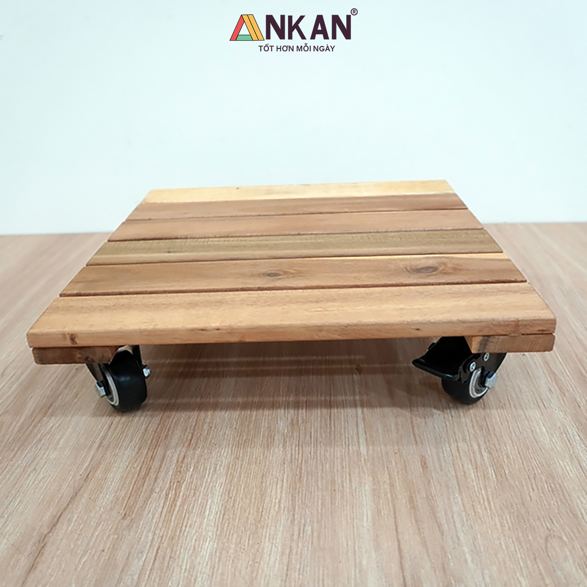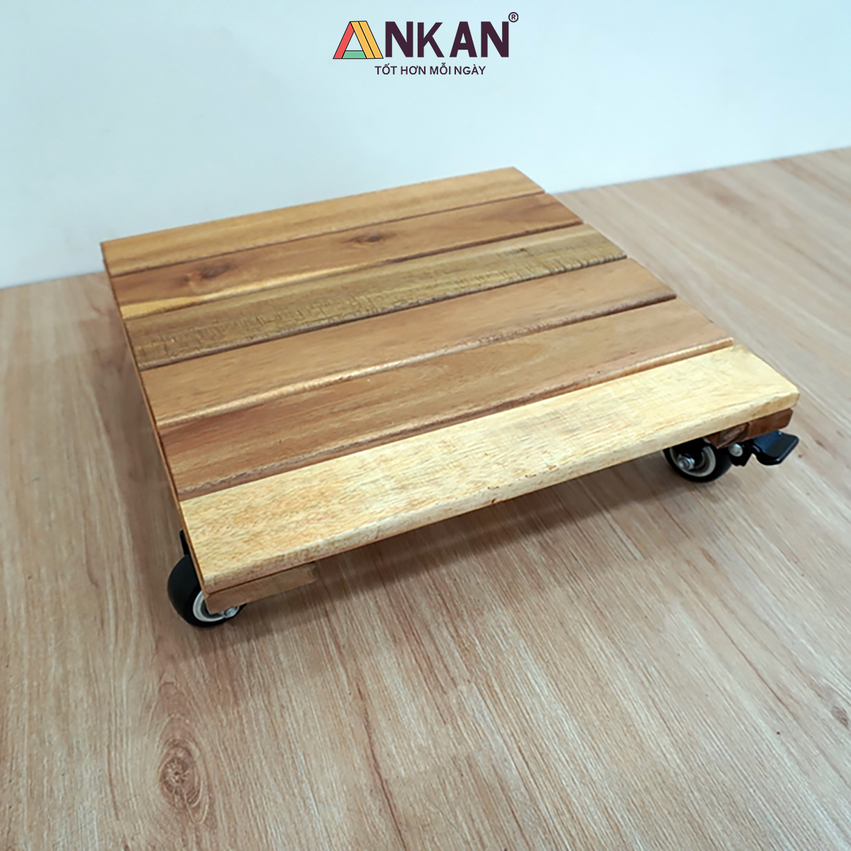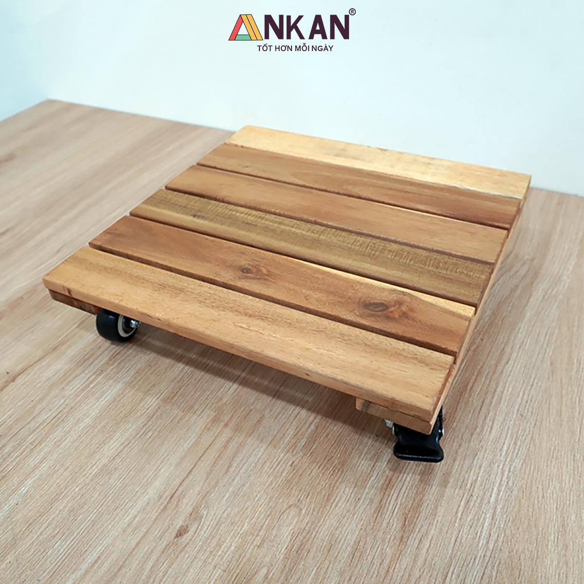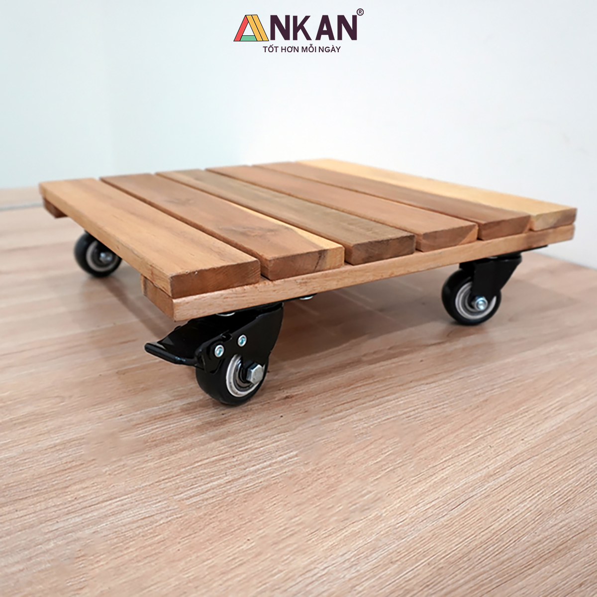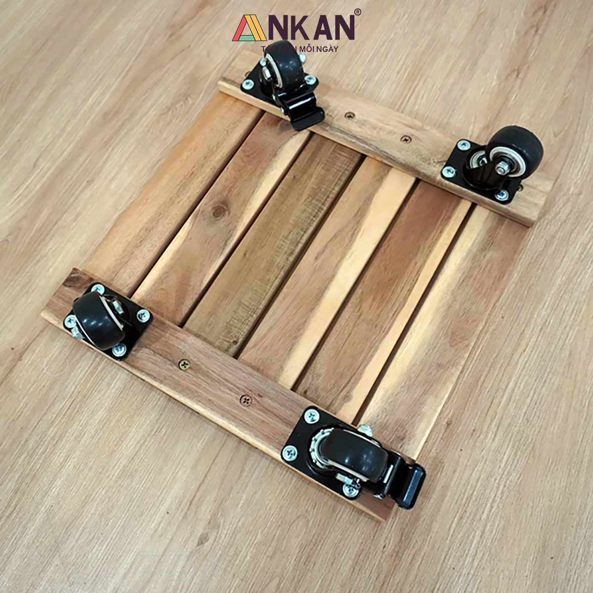 Thông số kỹ thuật Kệ Để Chậu Cây Có Bánh Xe ANKAN, Đế Để Chậu Cây, Kệ Giá Đỡ Chậu Hoa Cây Cảnh, Hình Vuông Màu Vàng R30 Cm, Tải 150kg