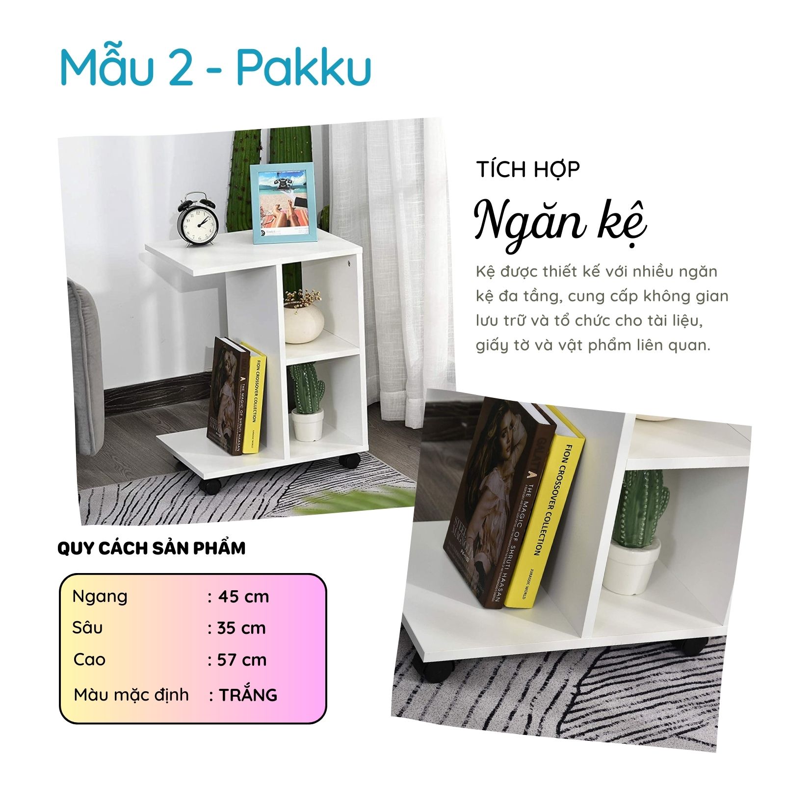 - Kệ được thiết kế với nhiều ngăn kệ đa tầng, cung cấp không gian lưu trữ và tổ chức cho tài liệu, giấy tờ và vật phẩm liên quan.