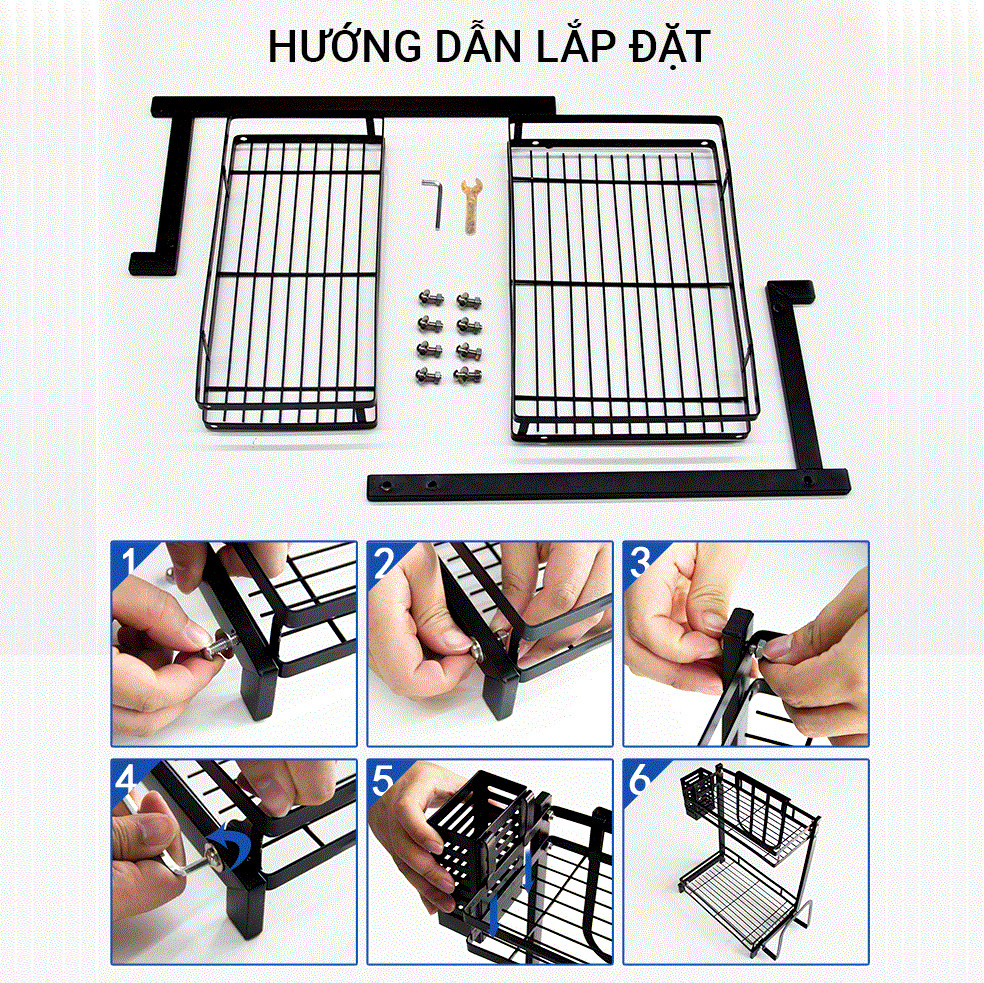 - Có kèm Treo dao thớt, đũa thìa, vung nồi gọn gàng, khô ráo.