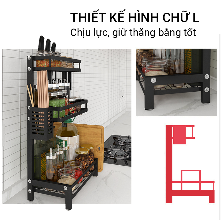 Kệ gia vị nhà bếp thông minh đa năng sắp xếp không gian bếp gọn gàng sạch sẽ.