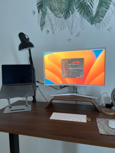 Kệ màn hình máy tính, Kệ Imac, Kệ kê màn hình gỗ uốn cong Mipu Imac Stand - Veneer Walnut tự nhiên.