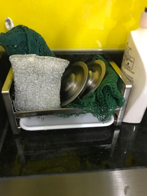 Quý khách có thể kê lên bồn rửa chén hoặc sử dụng keo Sealant fix đi kèm để dán lên kệ lên tường