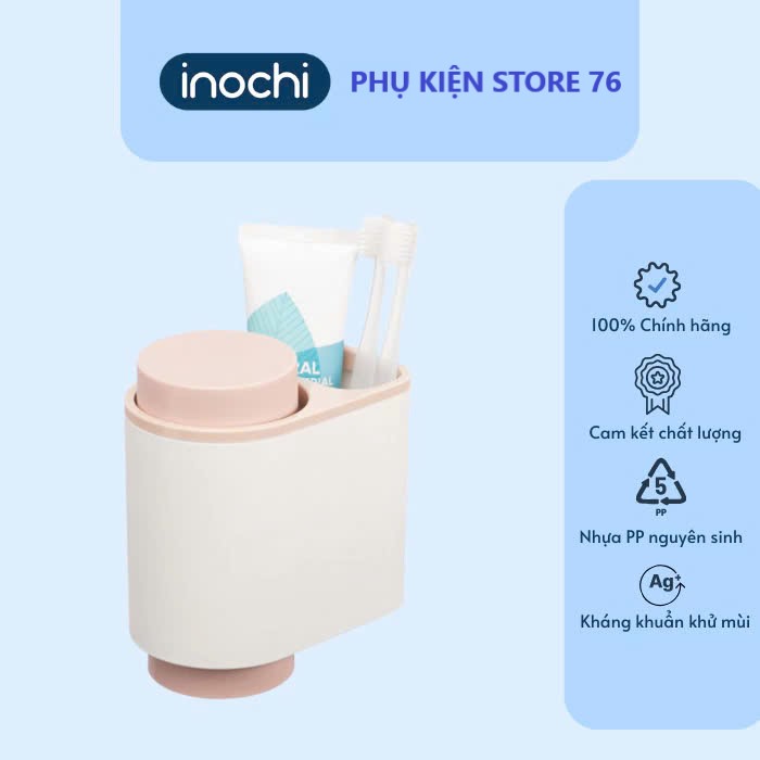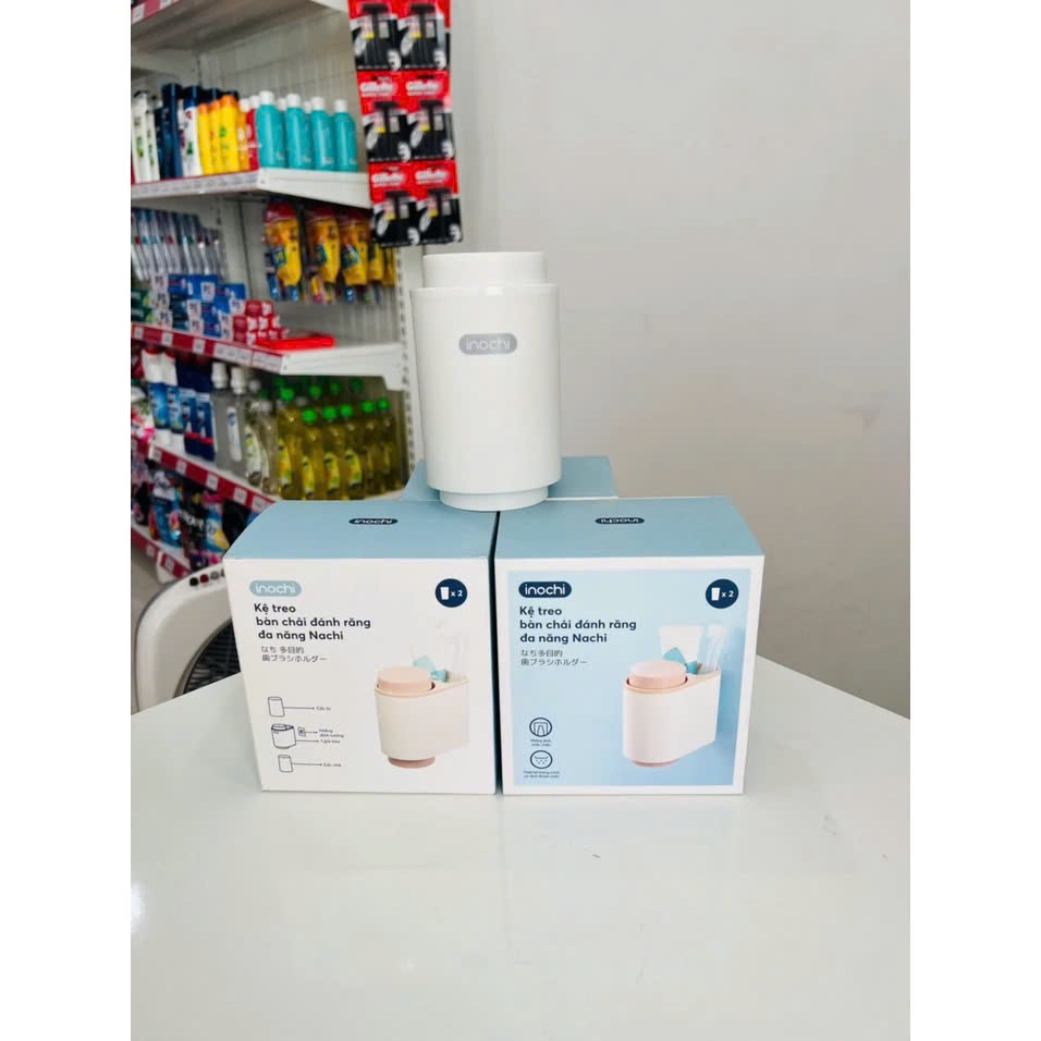 Kệ treo bàn chải đánh răng đa năng Nachi 2 cốc chất liệu nhựa nguyên sinh an toàn - Chính hãng inochi ( Tặng kèm khăn lau pakasa)