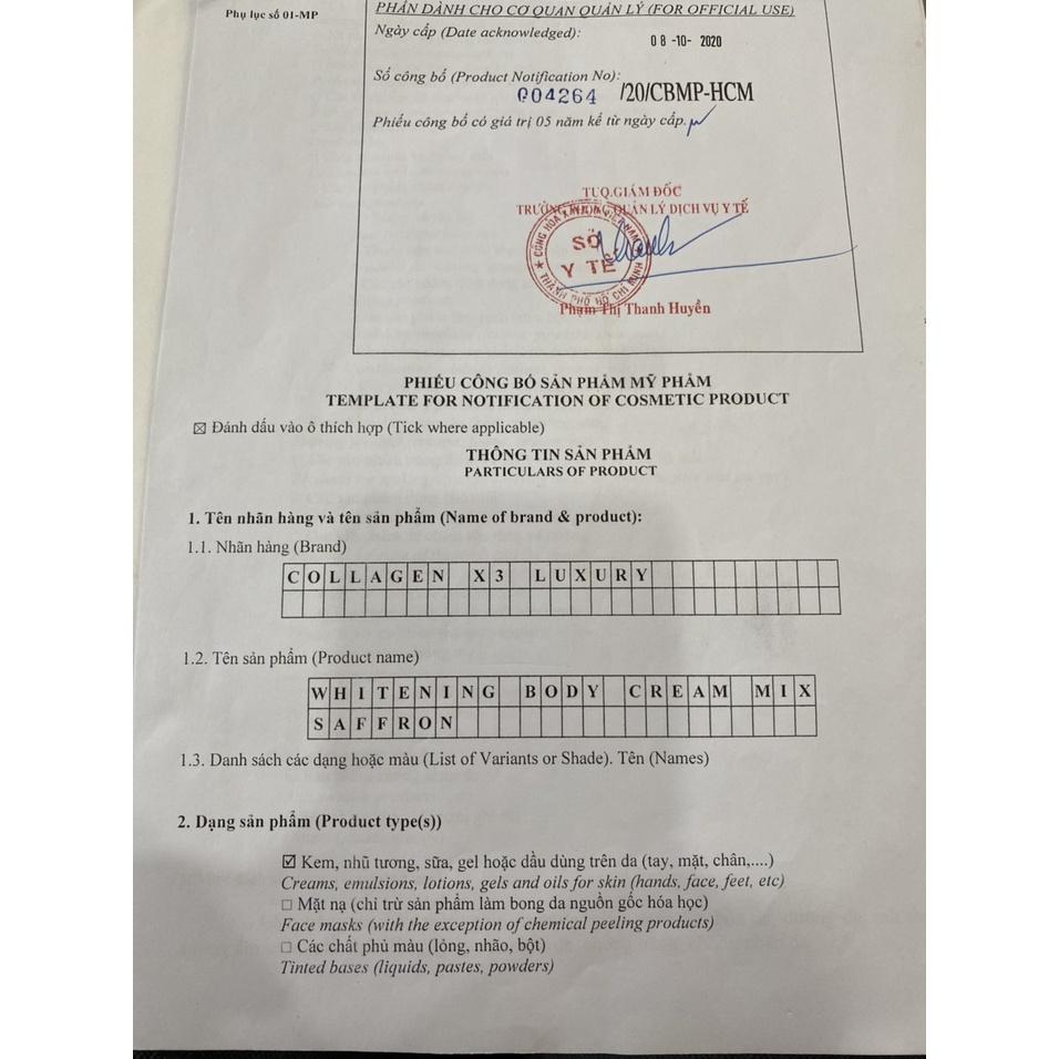 Thông số kỹ thuật Kem Body Collagen X3 Luxury và Kích trắng Colagen X3