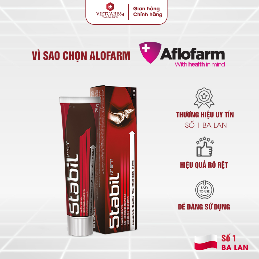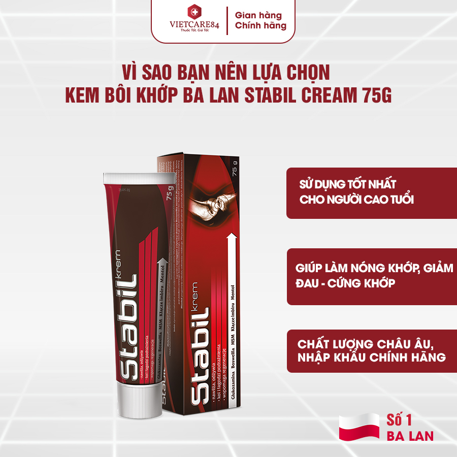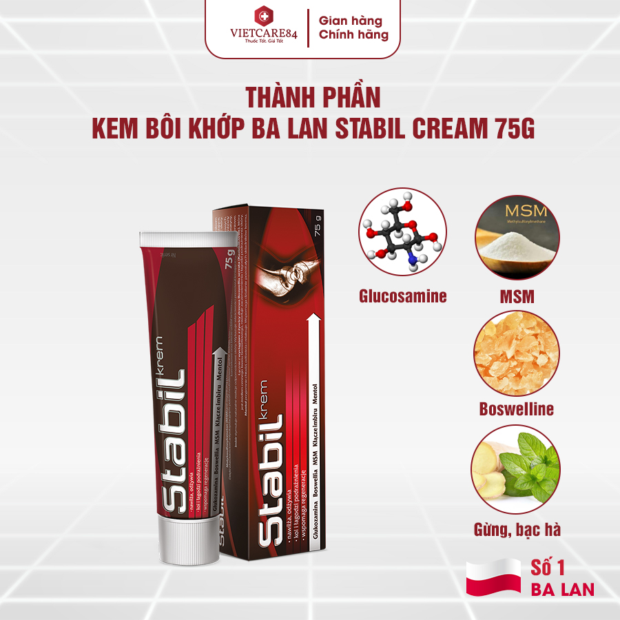 Thông số kỹ thuật Kem bôi khớp nhập khẩu chính hãng Ba Lan STABIL (75 gam/ tuýp) bổ sung Glucosamine, Gừng, MSM, Boswellia & Bạc hà giúp thẩm thấu chăm sóc các khớp, giảm cứng khớp