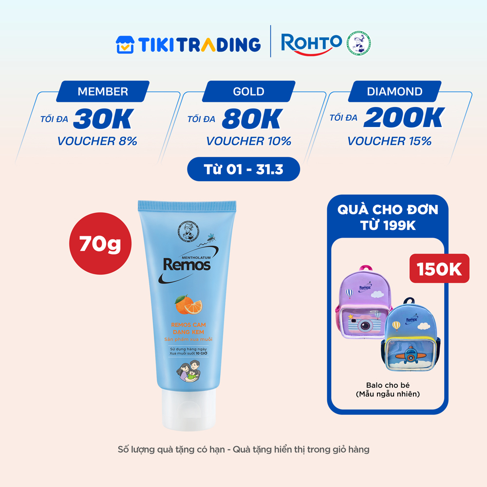 - Kem chống muỗi Remos với hiệu quả xua muỗi suốt 10 giờ.