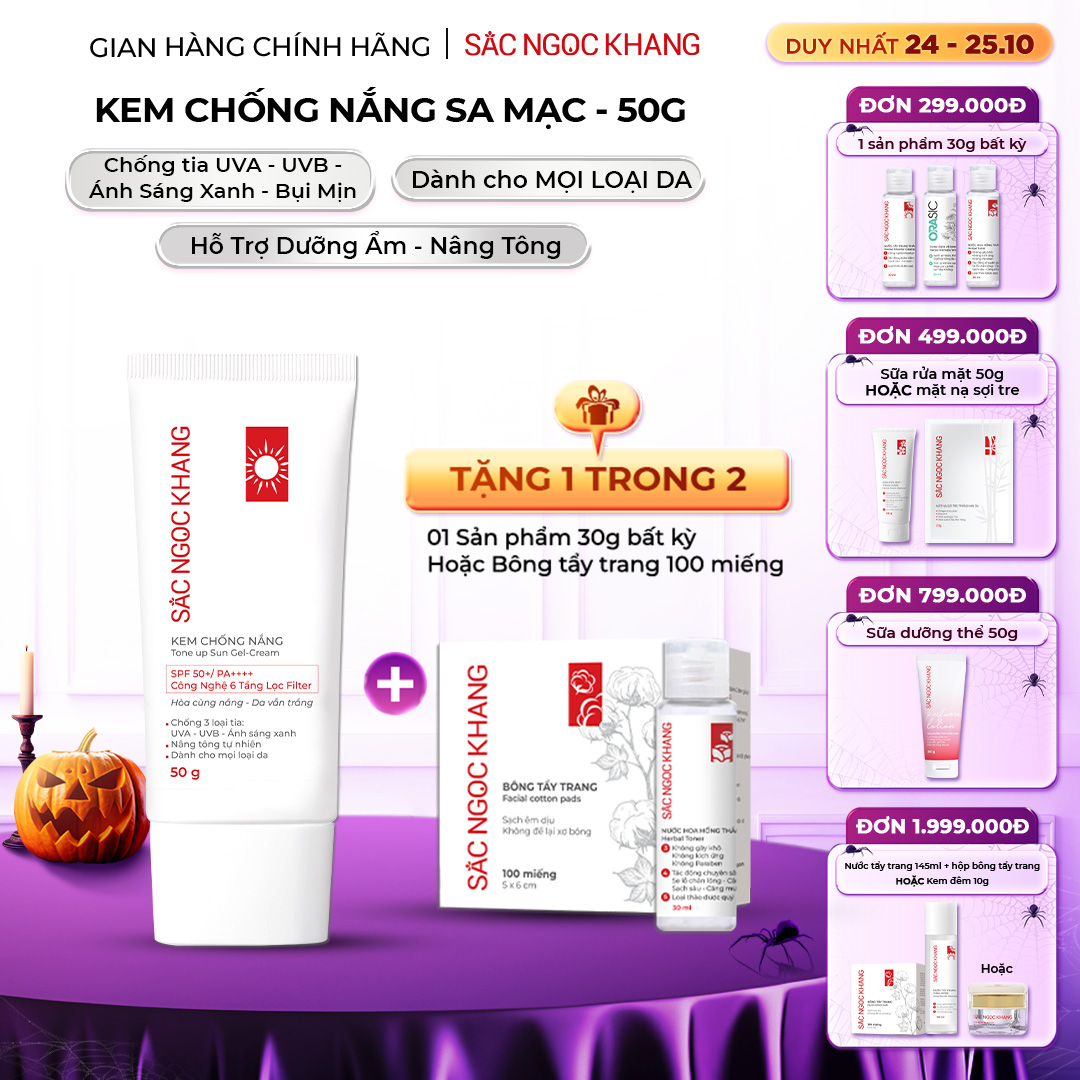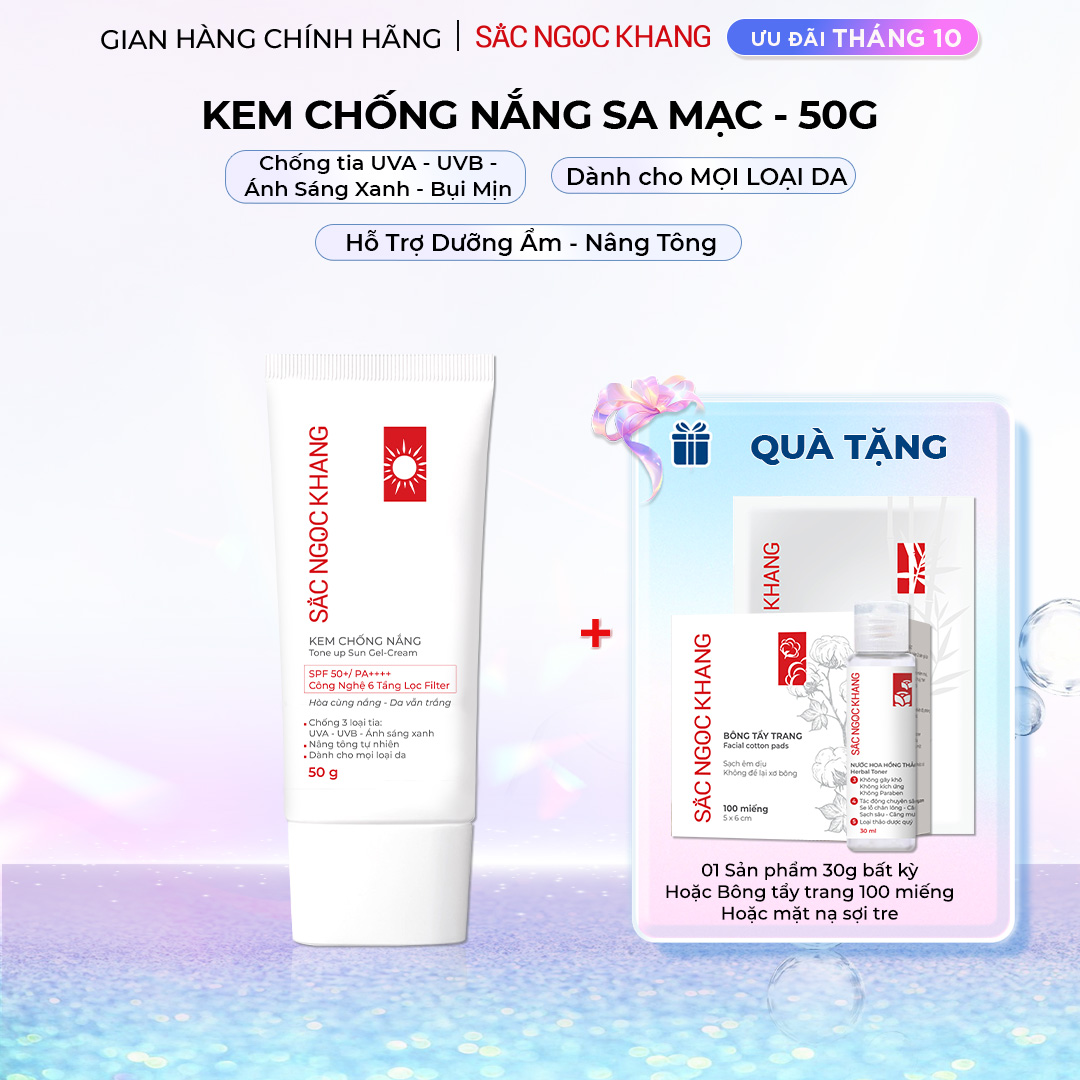 Thông số kỹ thuật Kem chống nắng Sắc Ngọc Khang 50g giúp chống nắng hiệu quả với chỉ số SPF50, PA++++