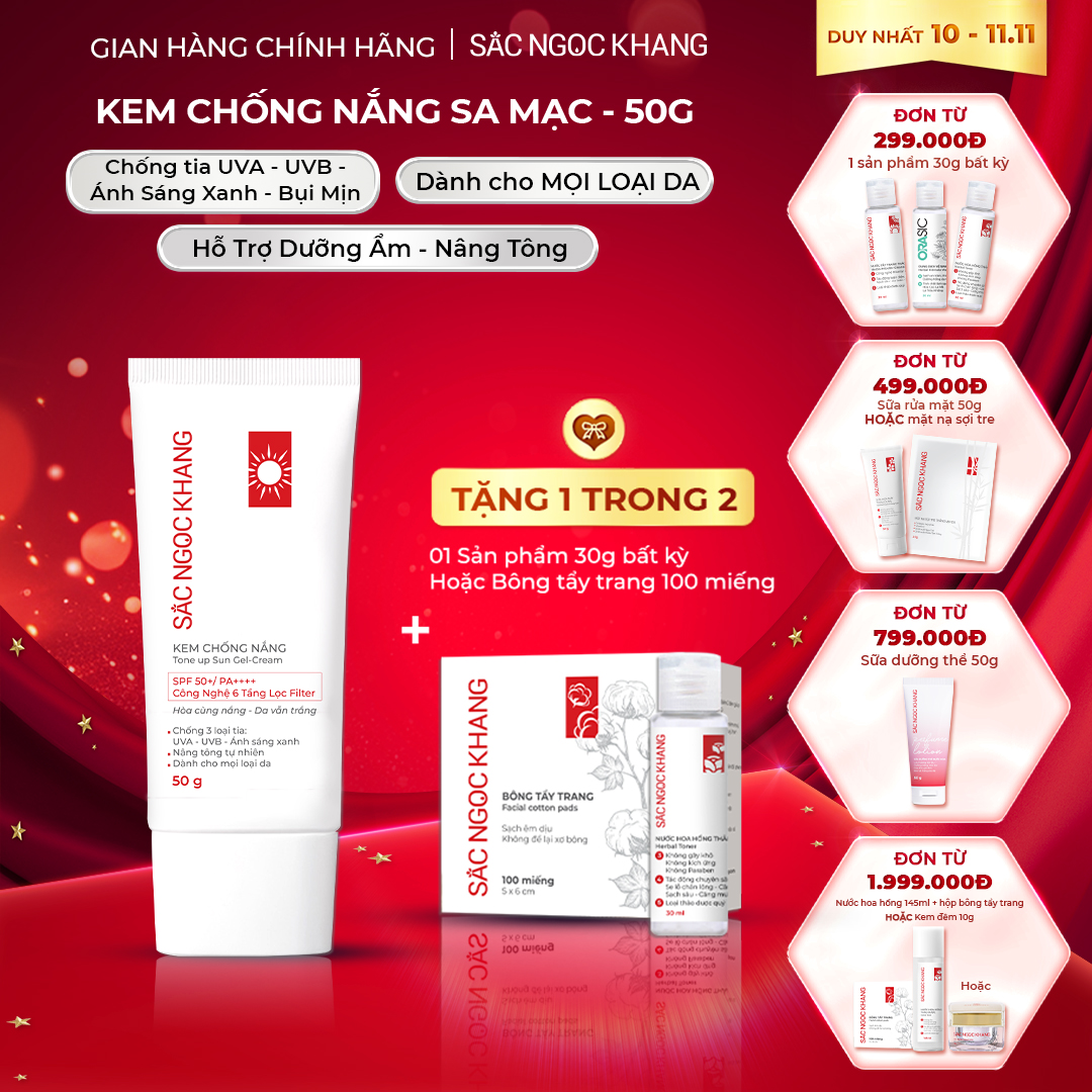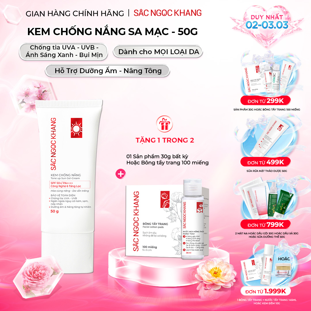 Bảo vệ tối đa chính là cách tốt nhất để làn da được tự do. Kem Chống Nắng “Sa Mạc” Sắc Ngọc Khang sẽ giúp bạn thực hiện điều đó với 6 tầng lọc Filter tiên tiến, chỉ số chống nắng SPF50+/PA++++ kết hợp với nguyên liệu tinh hoa từ những vùng đất khắc nghiệt nhất cho khả năng bảo vệ vượt trội – cản nắng tối ưu – chăm da toàn diện: