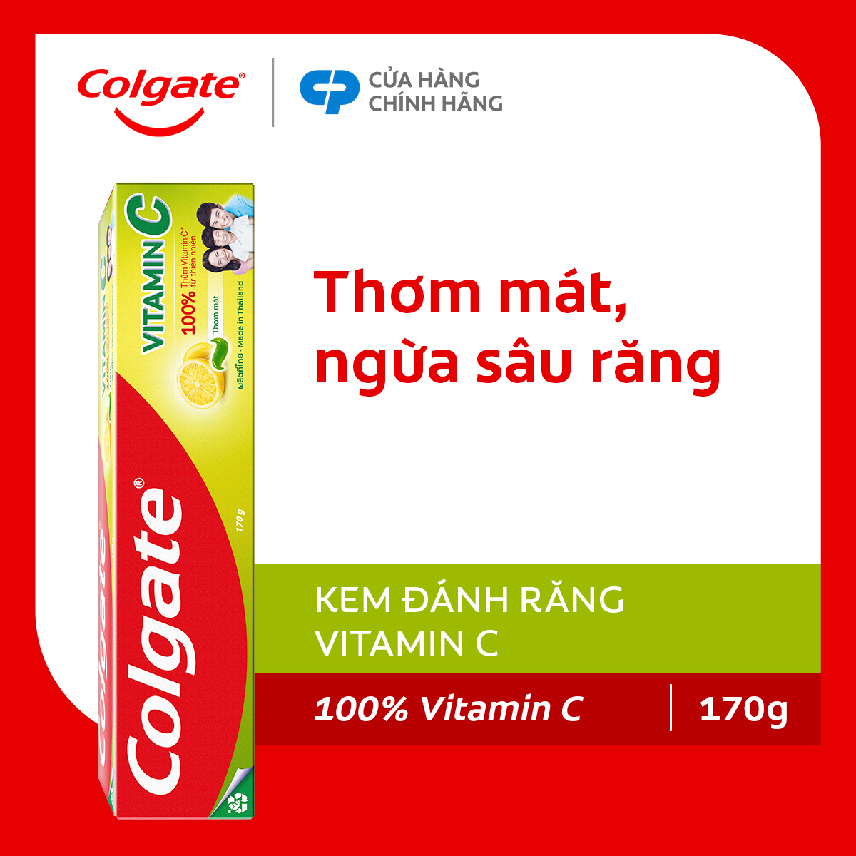 Kem đánh răng Colgate Vitamin C giúp ngừa sâu răng, làm giảm mảng bám trên răng, với hương chanh thơm mát sẽ bảo vệ và giúp răng bạn chắc khỏe, tạo cảm giác thật sáng khoái khi chải răng. Với chiết xuất dạng gel trong, cùng vị Vitamin C thơm mát giúp răng sạch toàn diện, cho hơi thở thơm mát và cảm giác sảng khoái dài lâu.