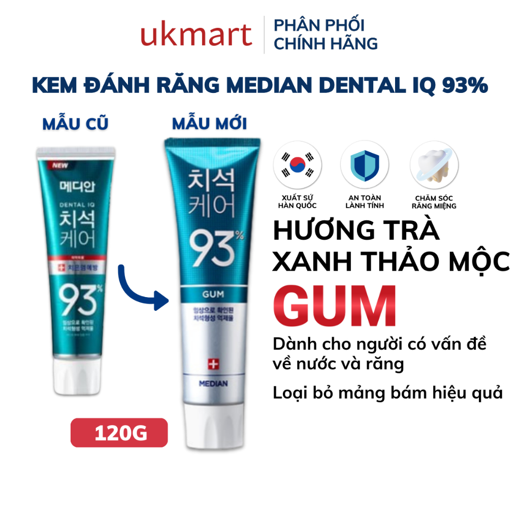 Thông số kỹ thuật Kem Đánh Răng MEDIAN DENTAL IQ 93% 120g - MEDIAN GUM SCIENCE 87% - 93% 120g