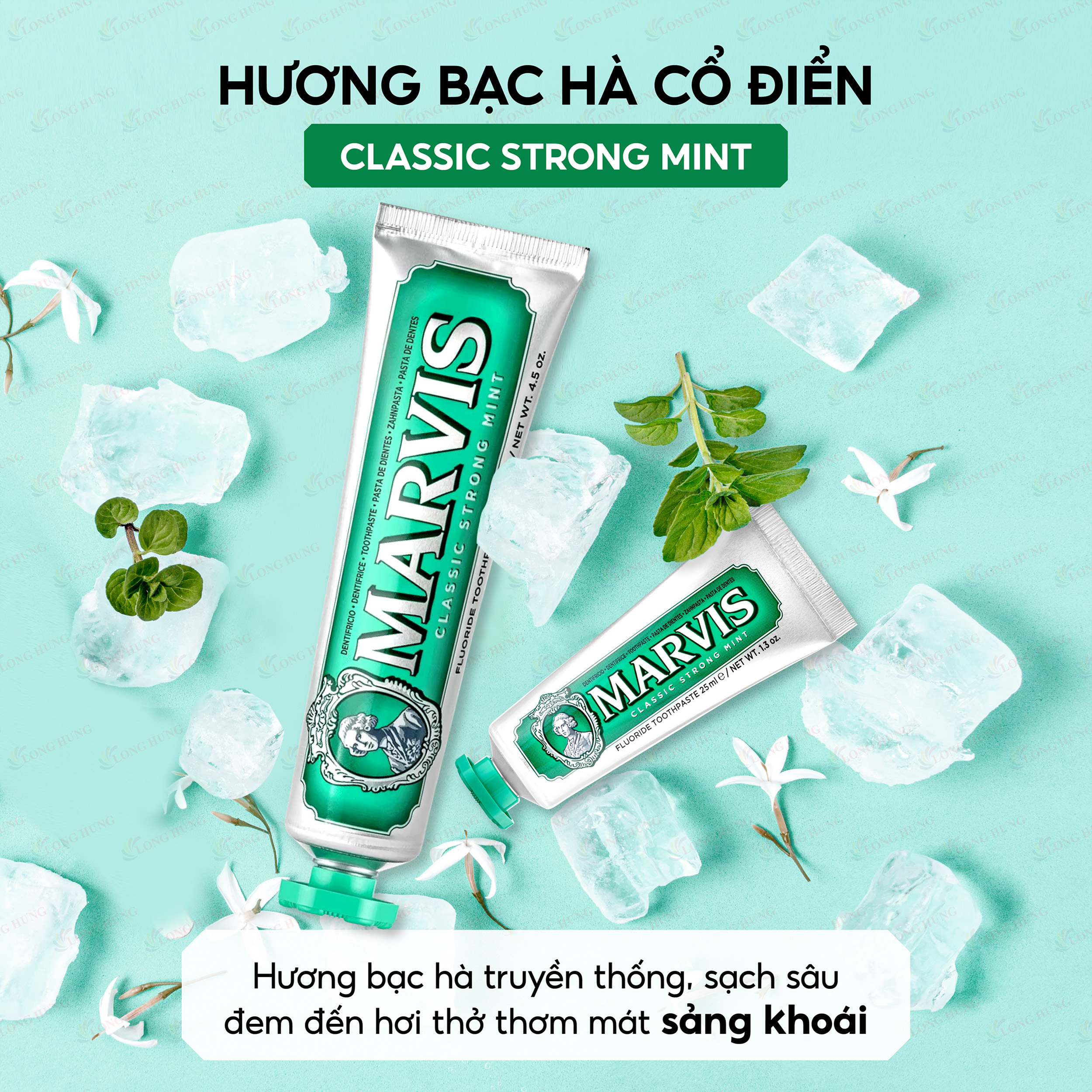 - Class Strong Mint ( Xanh Lá Đậm ): hương bạc hà truyền thống, tác dụng làm sạch răng miệng, đem đến hơi thở mát mẻ, tươi mới