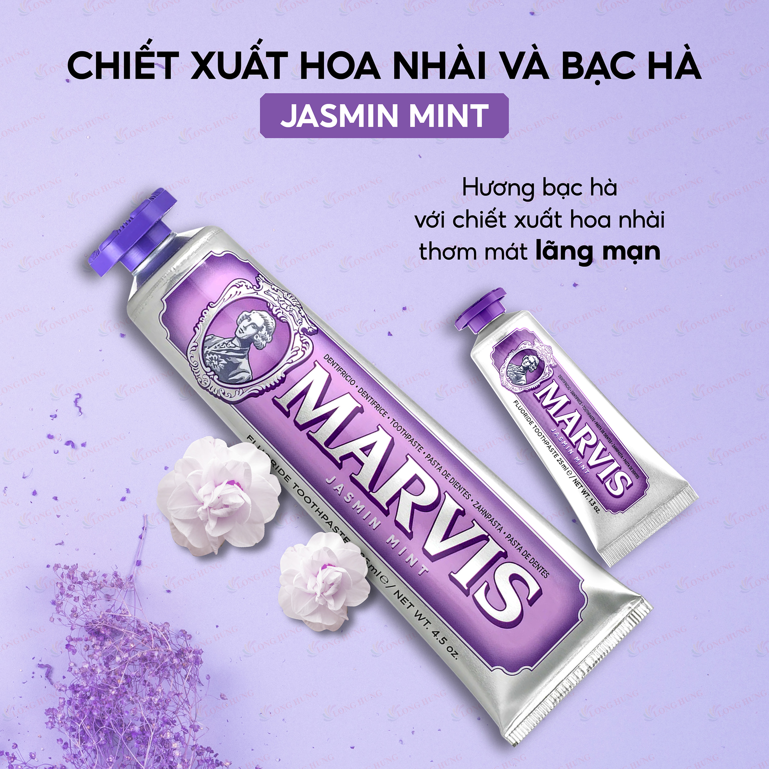 - Jasmin Mint ( Tím ): hương bạc hà kết hợp chiết xuất hoa nhài, đem lại hơi thở thơm tho, mát mẻ lãng mạn