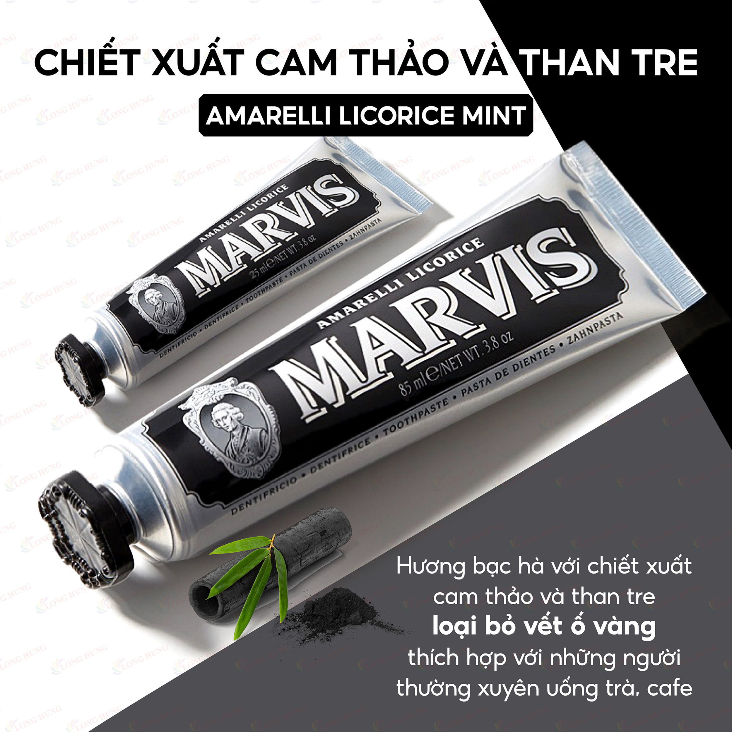 - Amarelli licorice ( Đen ): hương bạc hà, thêm chiết xuất cam thảo và than tre, phù hợp với những người thường xuyên h.ú ố, uống r.ư.ợ trà và cà phê