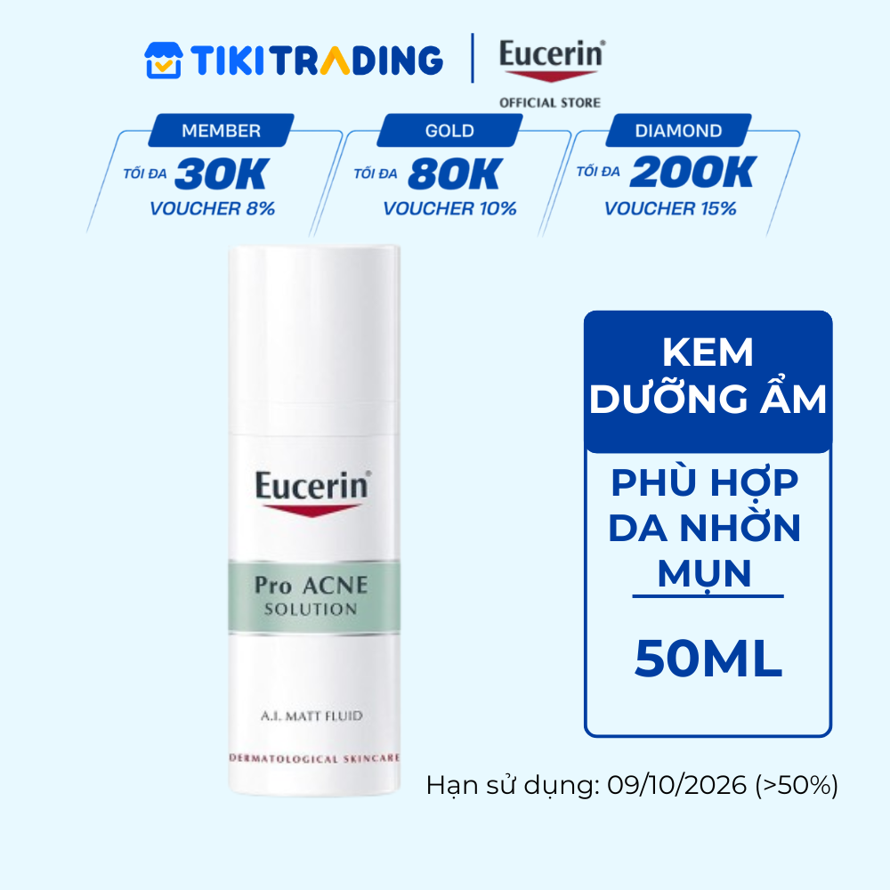 Eucerin ProAcne A.I Matt Fluid là kem dưỡng giảm mụn, giúp chống lại sự hình thành mụn đầu đen và mụn trứng cá thông qua việc kiểm soát lượng dầu thừa trên da. Thành phần chính của sản phẩm: