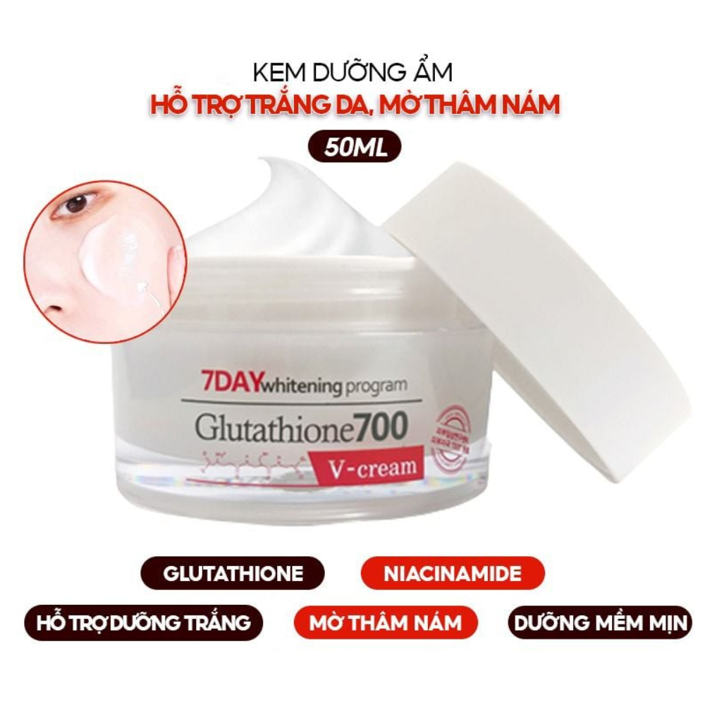 Kem Dưỡng Trắng Da Cấp Ẩm Đa Tầng Angel's Liquid 7 Day Whitening Program Glutathione 700 V-Cream 50ml