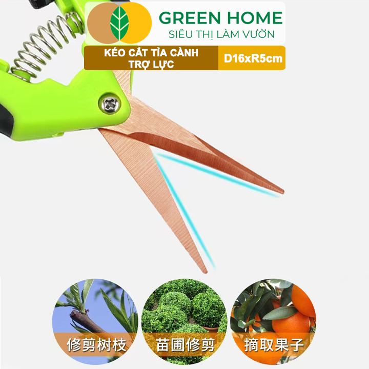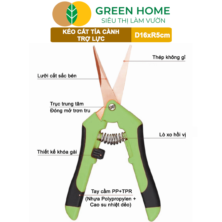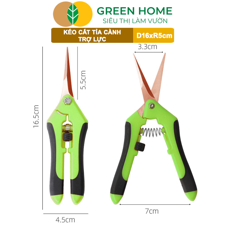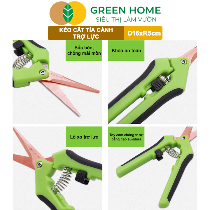 Thông số kỹ thuật Kéo Cắt Cành GreenHome, D16,5xR4,5cm, Inox, Mũi Nhọn, Siêu Bén, Không Gỉ, Có Khoá An Toàn, Nhiều Màu Lựa Chọn
