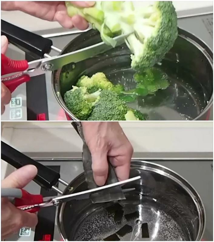 - Với 3 chức năng: dùng để cắt nhiều loại thức ăn như rau, thịt, cá, gà các loại bao bì, túi gói nguyên liệu, sử dụng như dụng cụ khui nắp chai, phần cán kéo dùng để kẹp càng cua ghẹ & các loại hạt, mở nắp chai