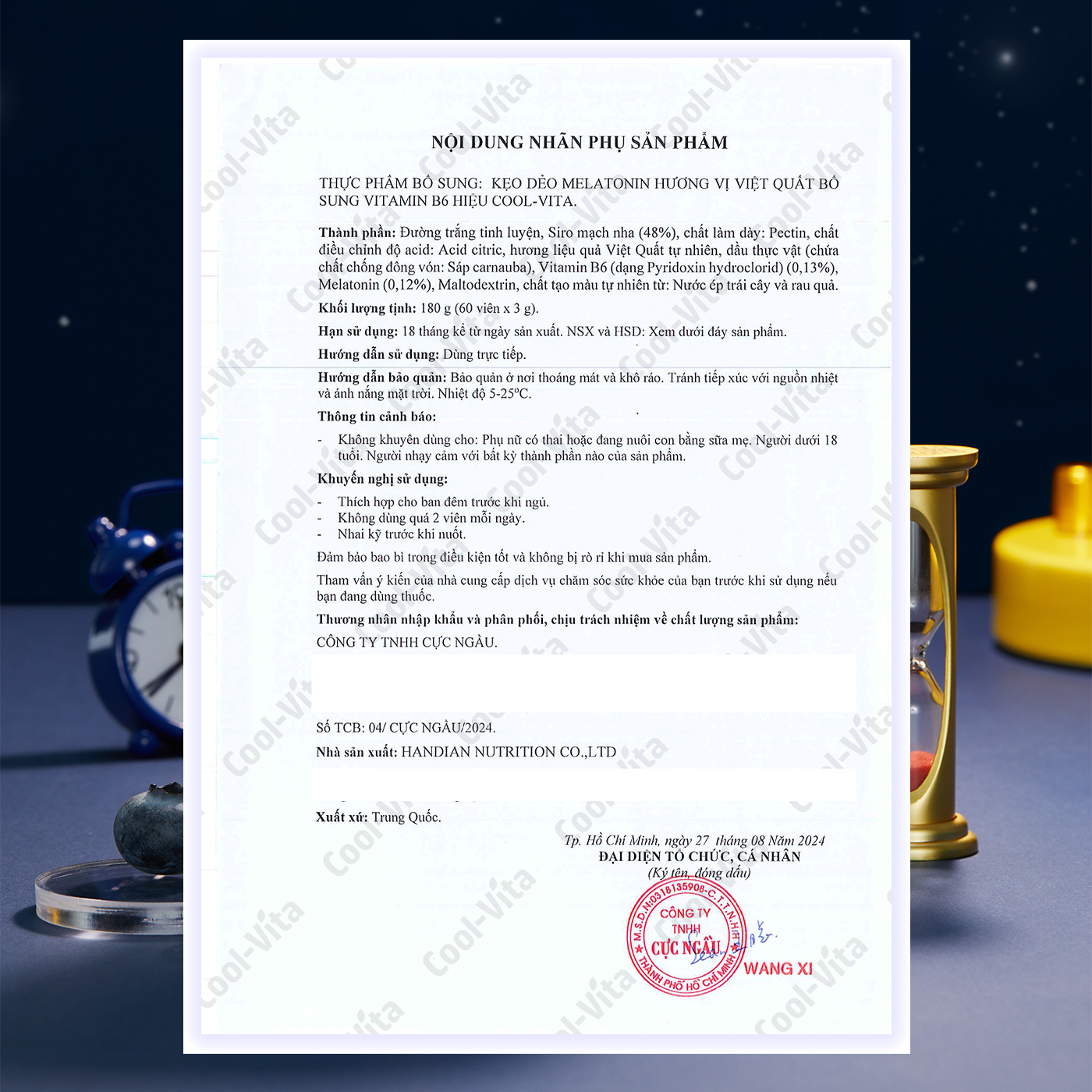 Thông số kỹ thuật Kẹo Dẻo Melatonin Hỗ Trợ Giấc Ngủ Ngon Sleep Well Gummies & Hỗ Trợ Giảm Căng Thẳng Vị Việt Quất Kết Hợp Vitamin B6 Coolvita – (60 viên x 3g)/hộp