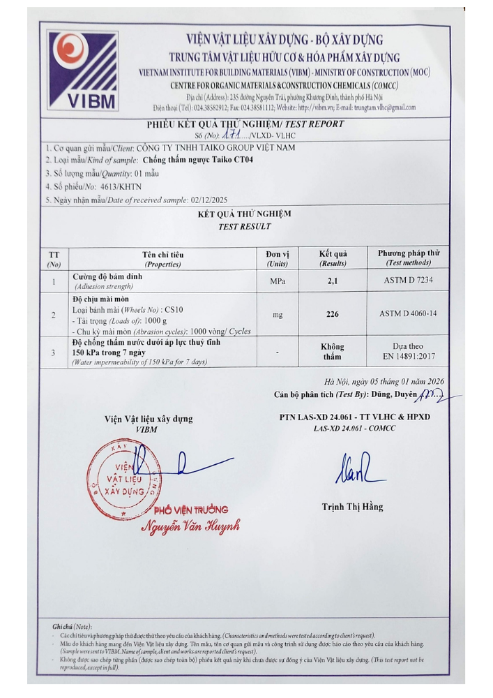 Thông số kỹ thuật 18 Kg Sơn Chống Thấm Ngược, Môi Trường Ẩm Nhà Vệ Sinh, Bể Cá, Bể Âm TAIKO CT4 - Tặng Kèm Vải Kết Cấu