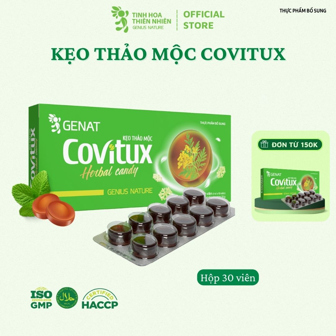 Thông số kỹ thuật Kẹo thảo mộc Covitux (hộp 30 viên) - Genat