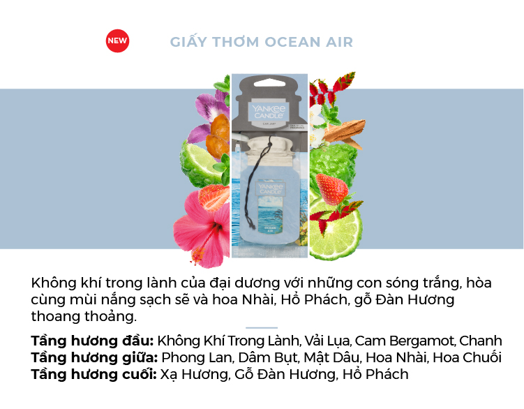 Thông số kỹ thuật Giấy Thơm Xe Yankee Candle - Ocean Air